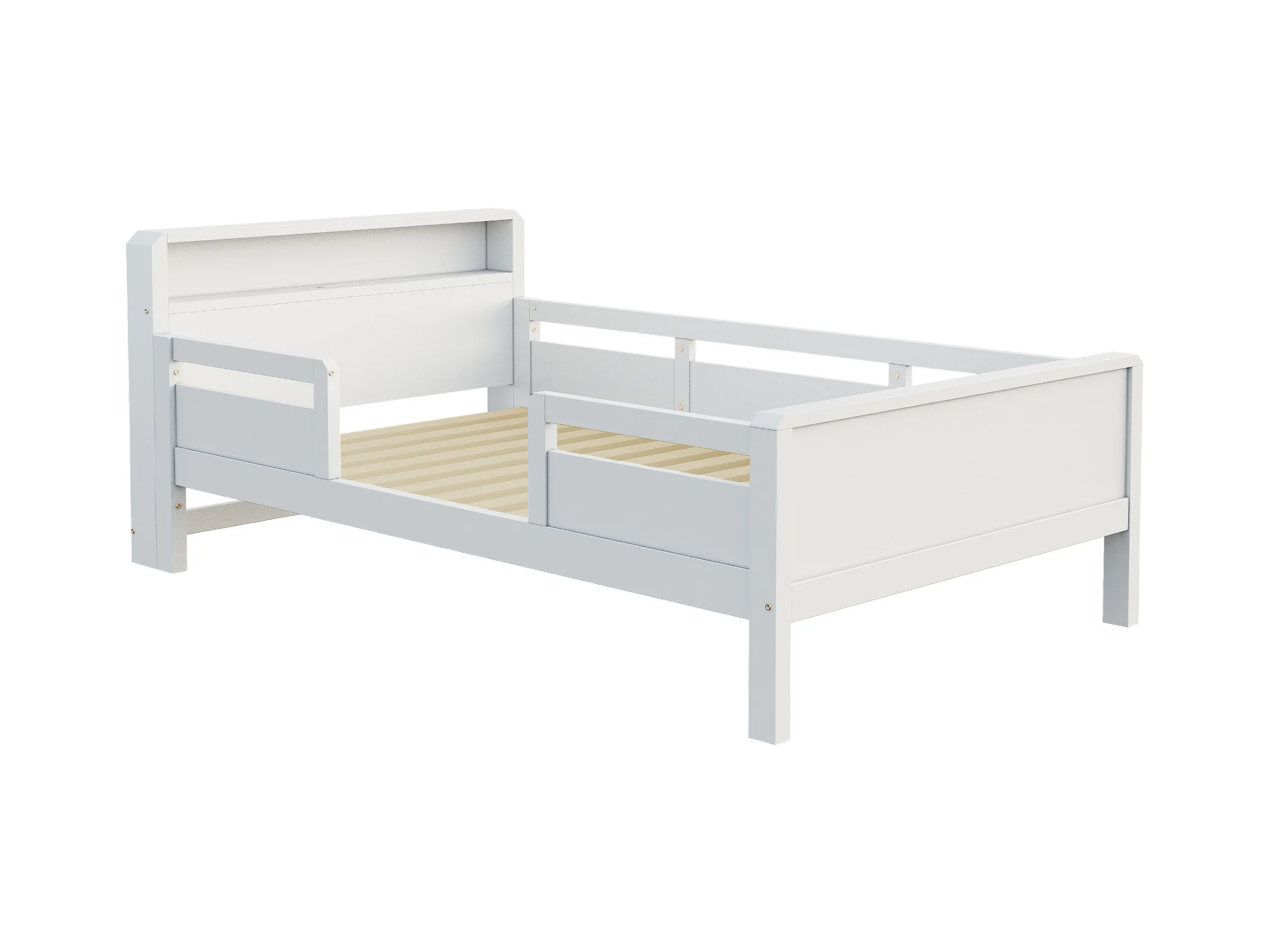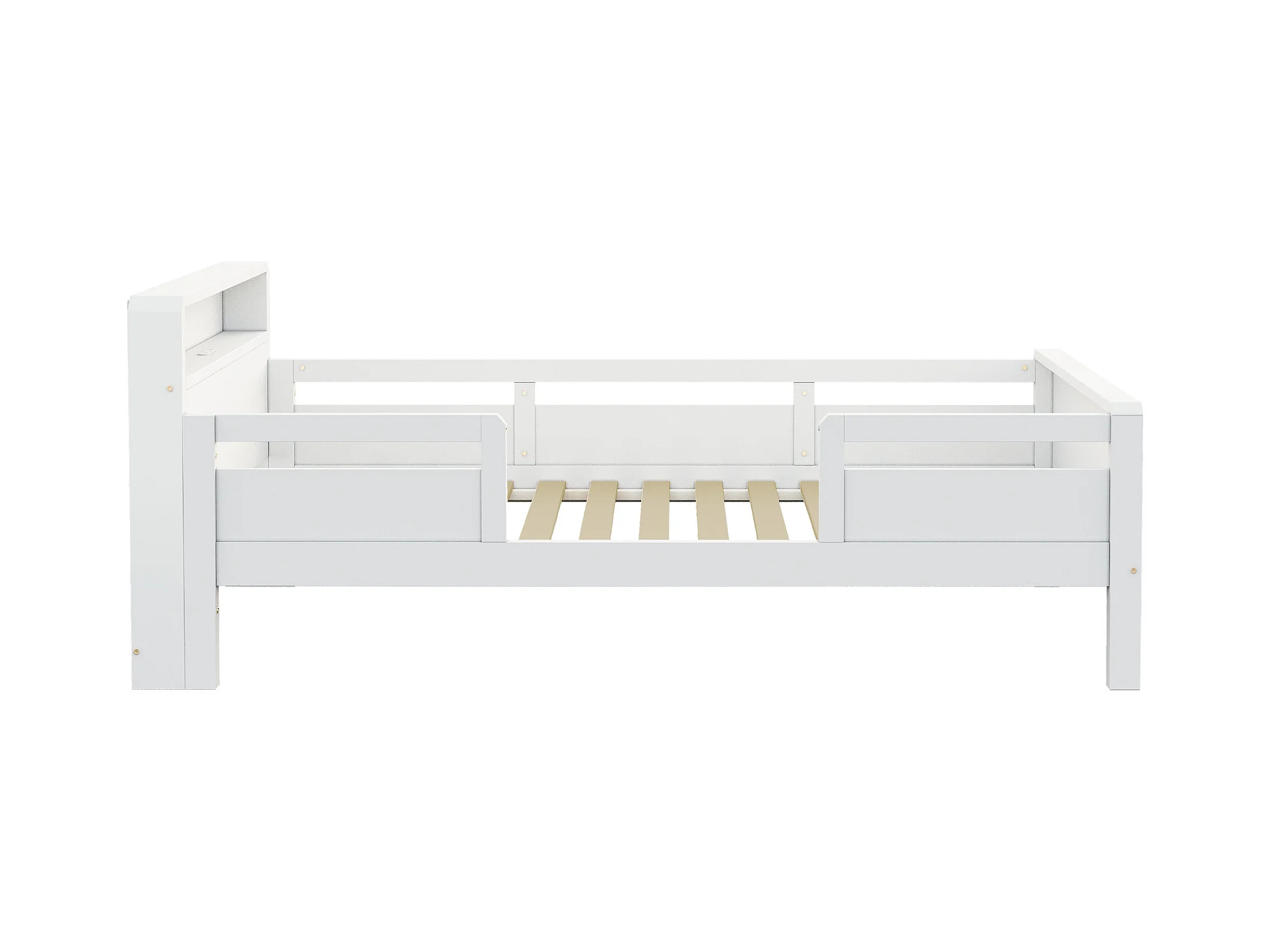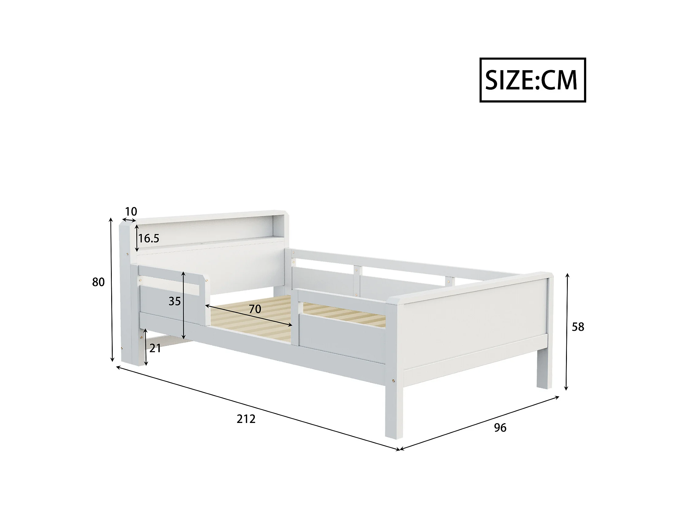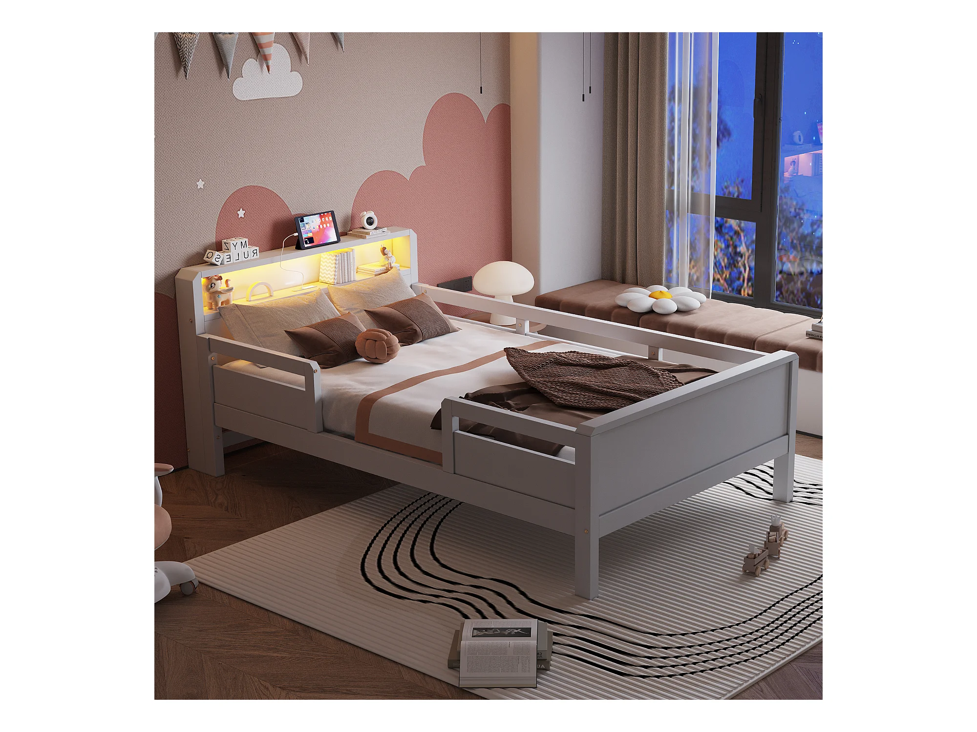 Lit enfant 90 x 200 cm - Lit simple avec éclairage LED et recharge USB - tête de lit avec rangement - blanc bois - matelas non inclus