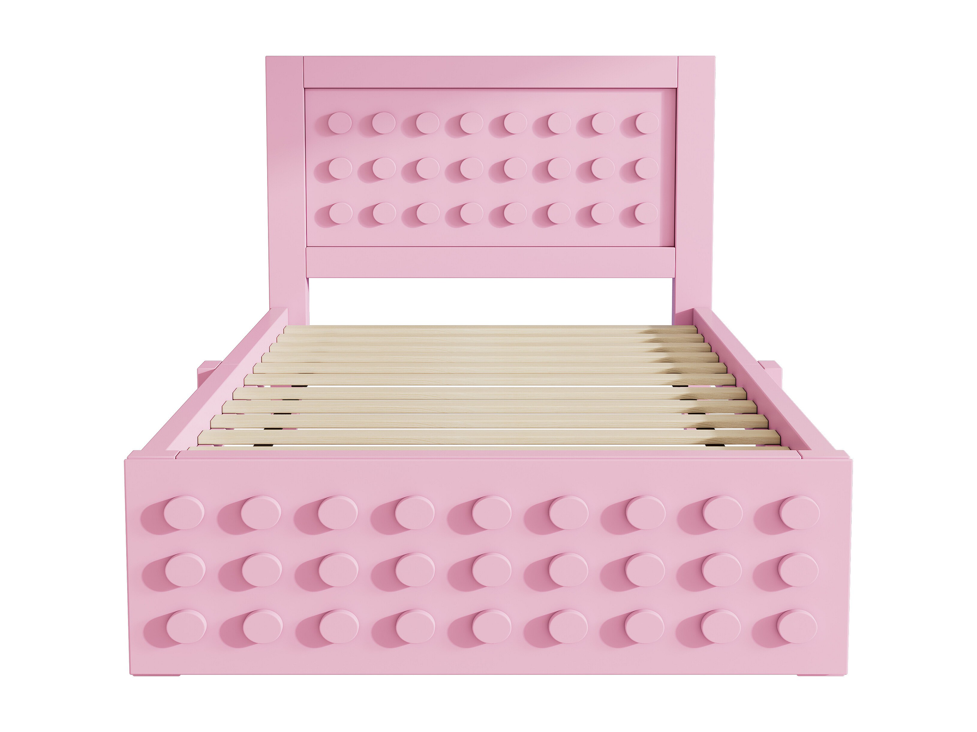 Lit enfant 90x190 cm avec 1 tiroir et sommier à lattes, design bloc créatif rose - sans matelas