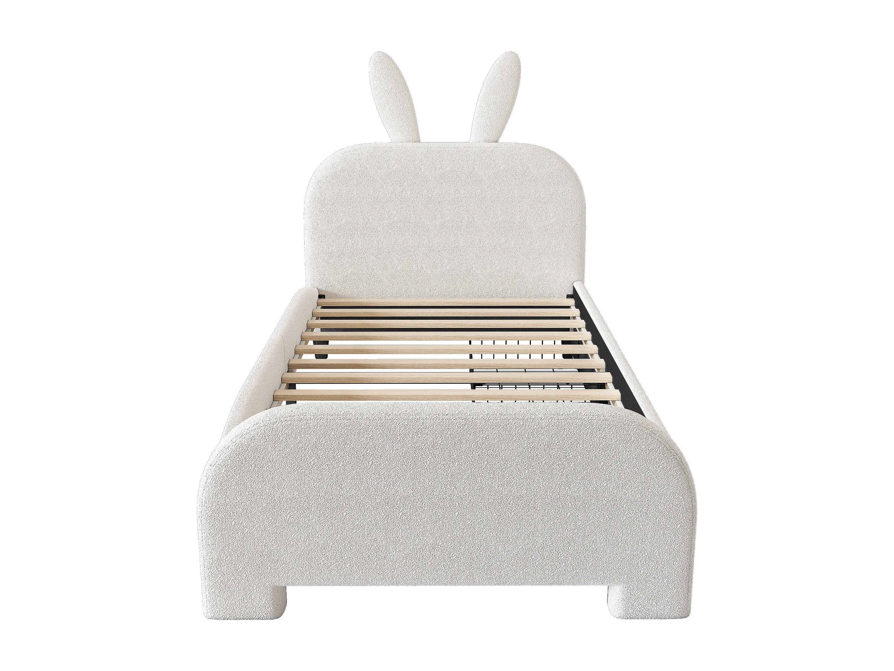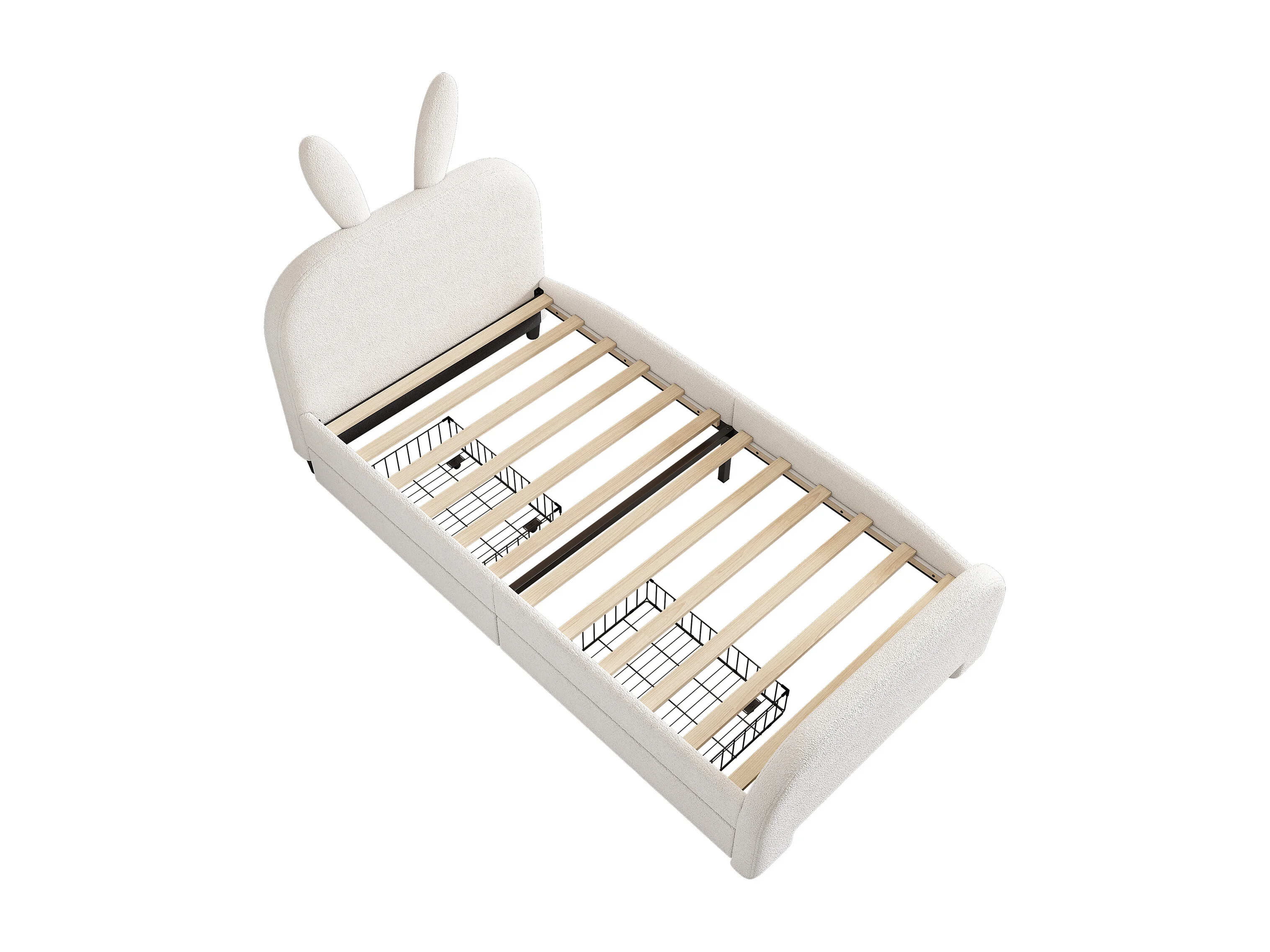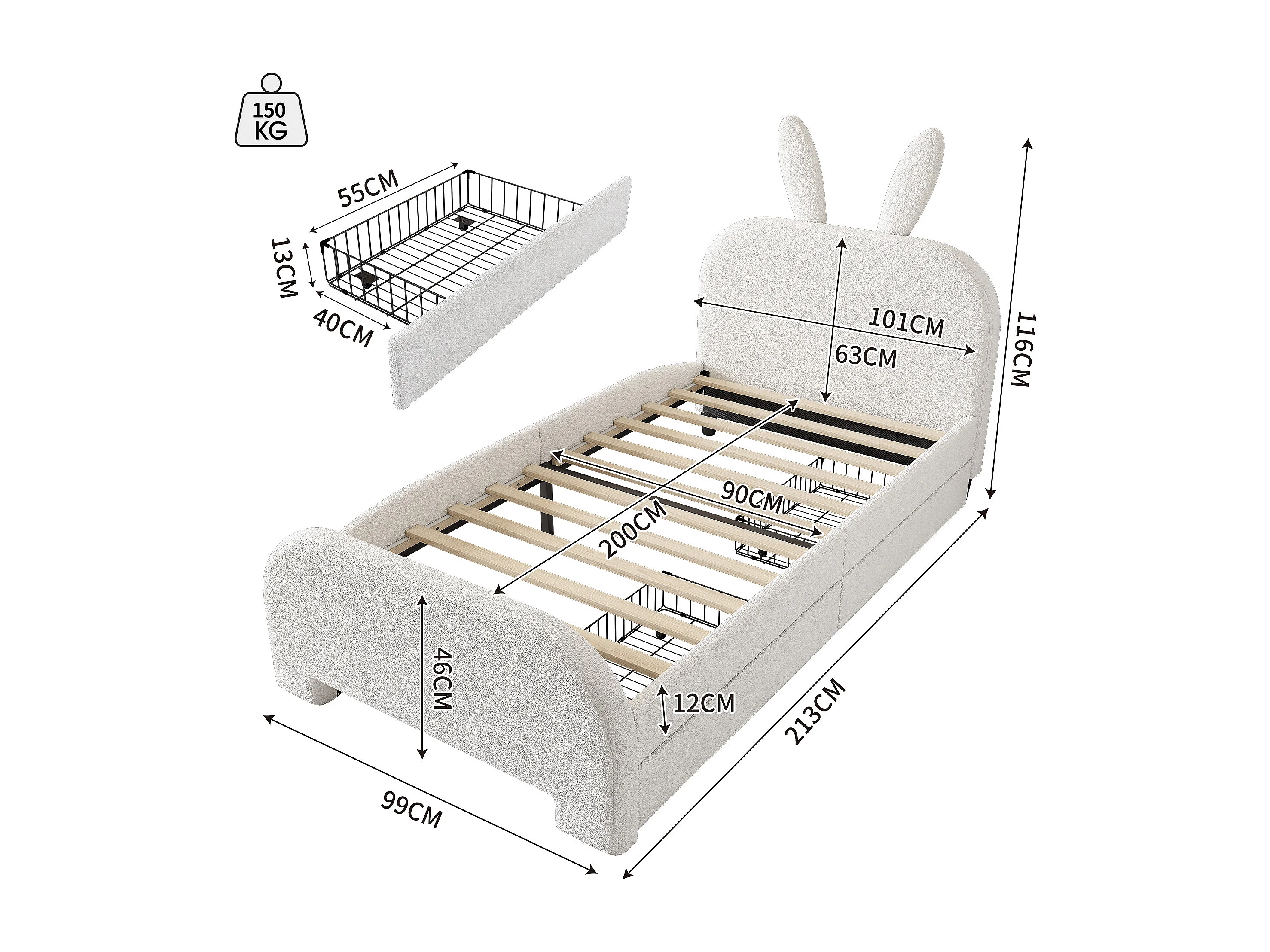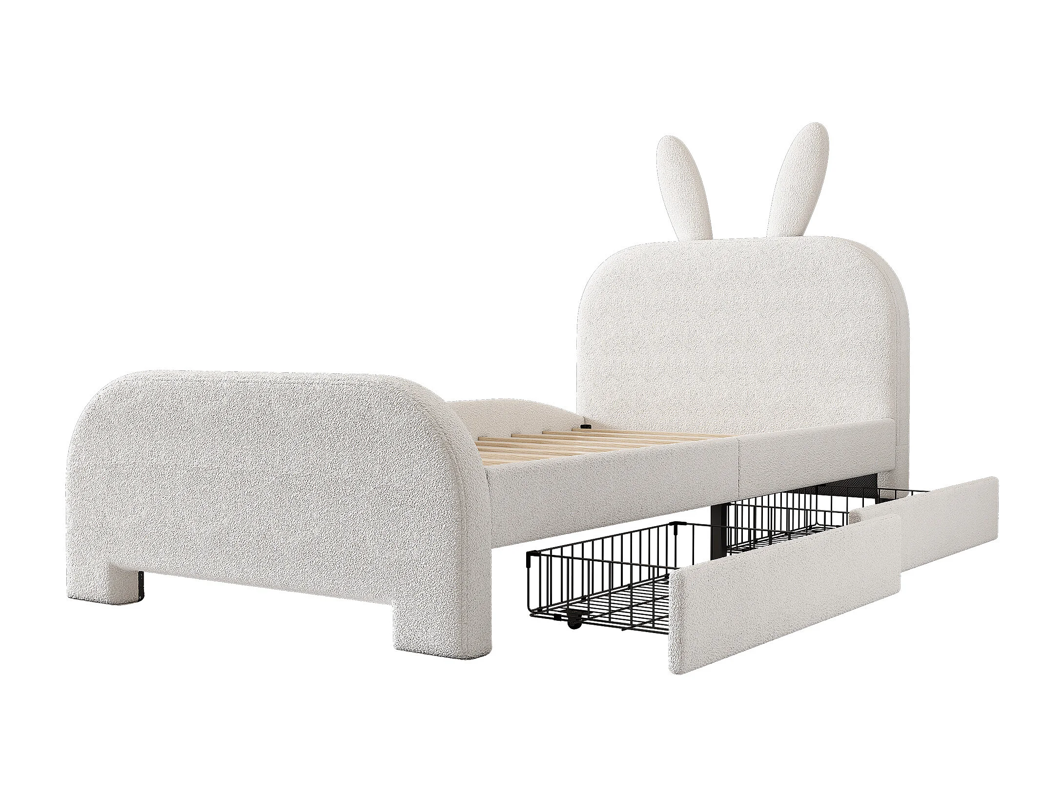 Lit enfant 90x200 cm avec 2 tiroirs - tête en forme de lapin - Blanc