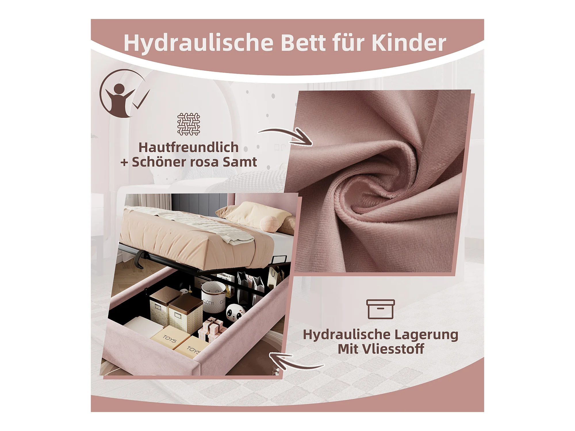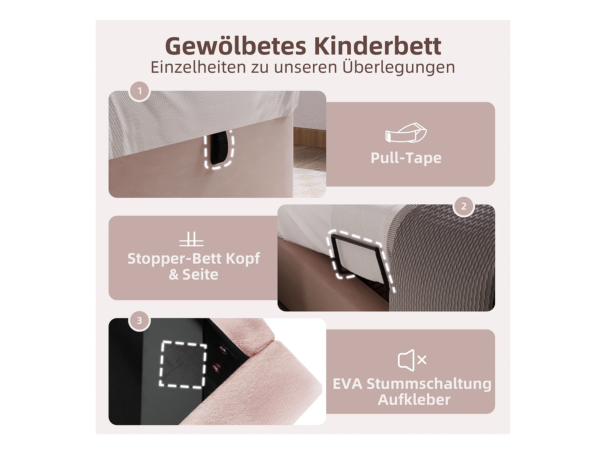 Lit enfant 90x200 cm avec motif cosmique, beige, en PU, pour garçons et filles (avec matelas)
