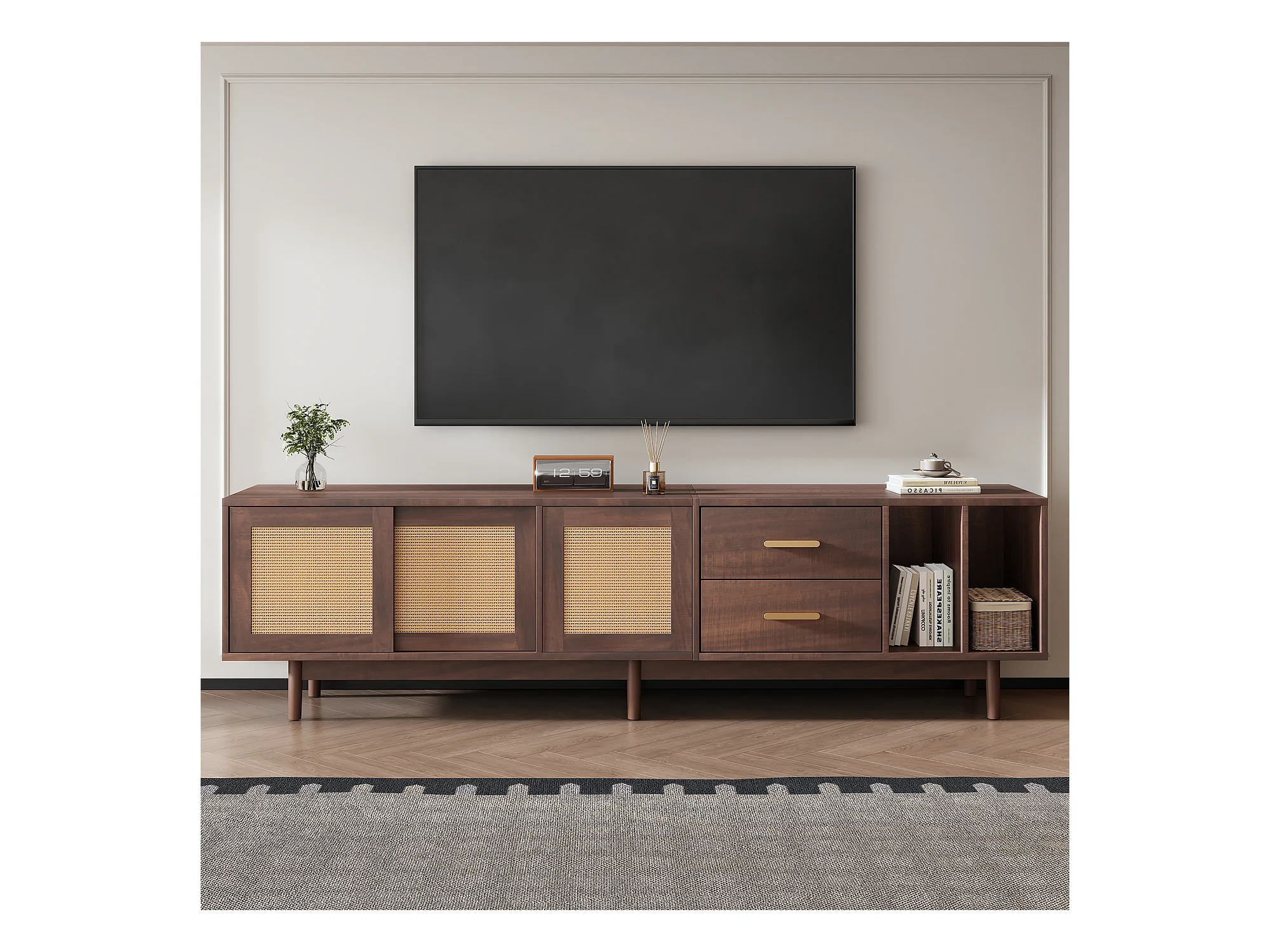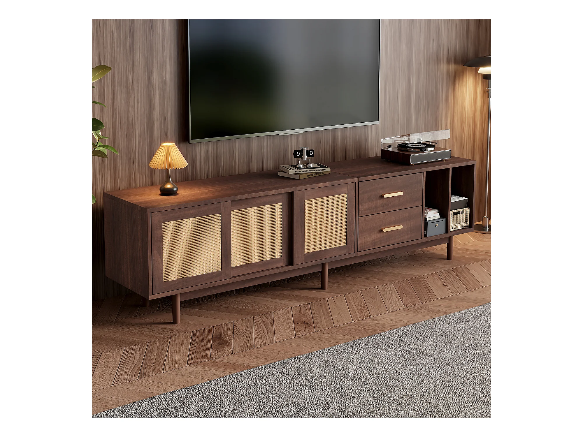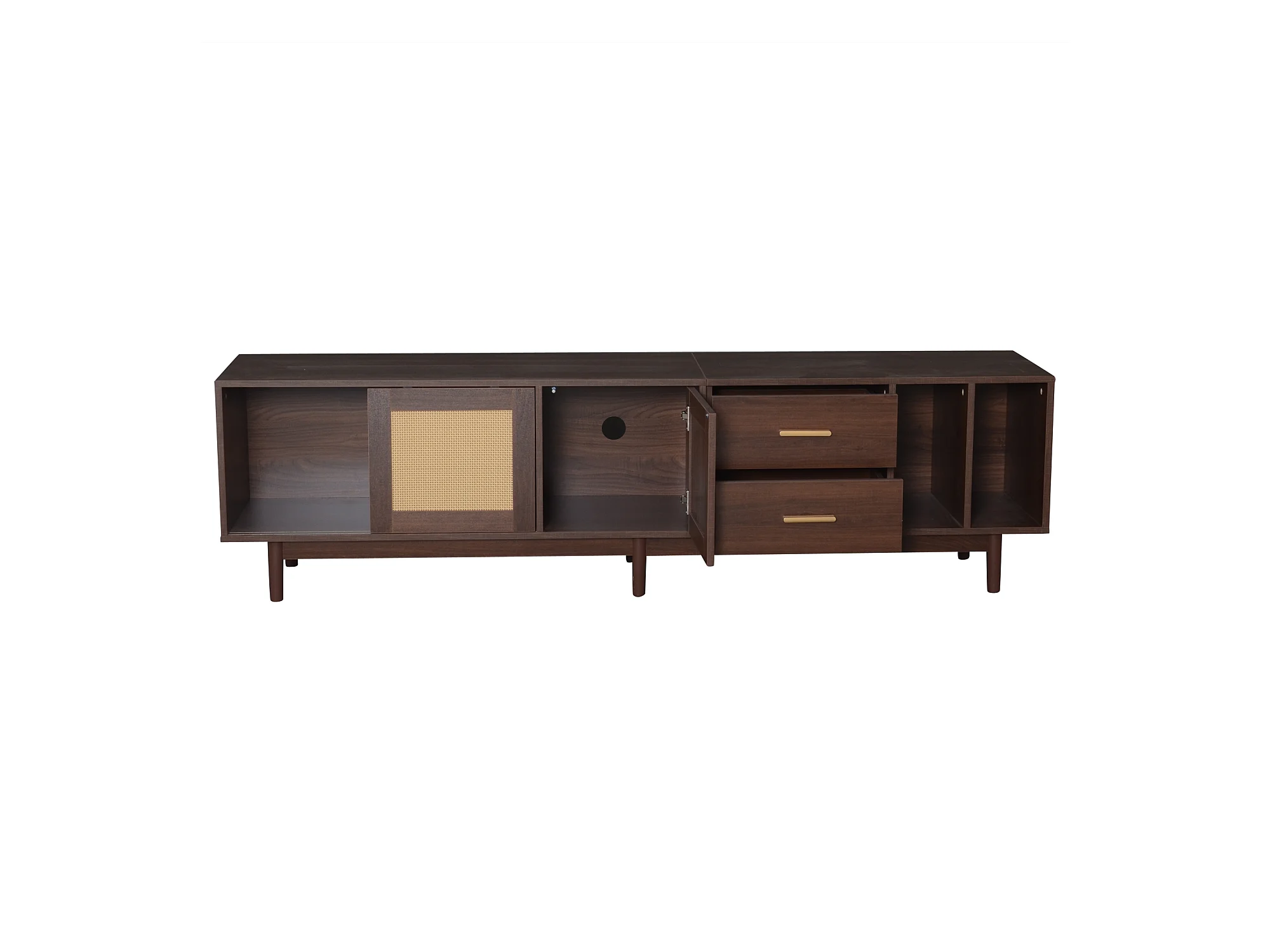 Meuble TV 190x40x52cm avec 3 portes, 2 tiroirs et 2 niches, corps en MDF marron foncé