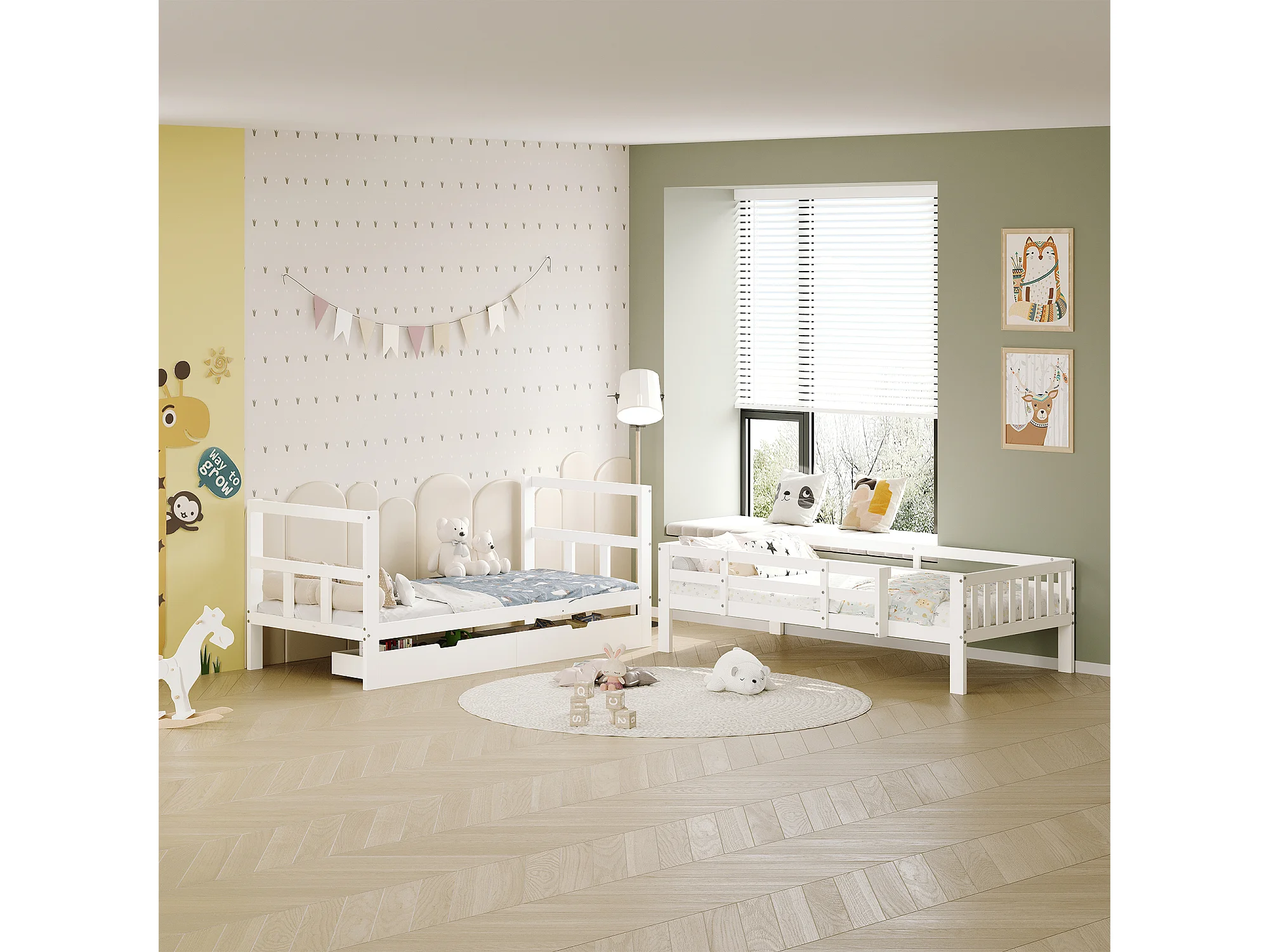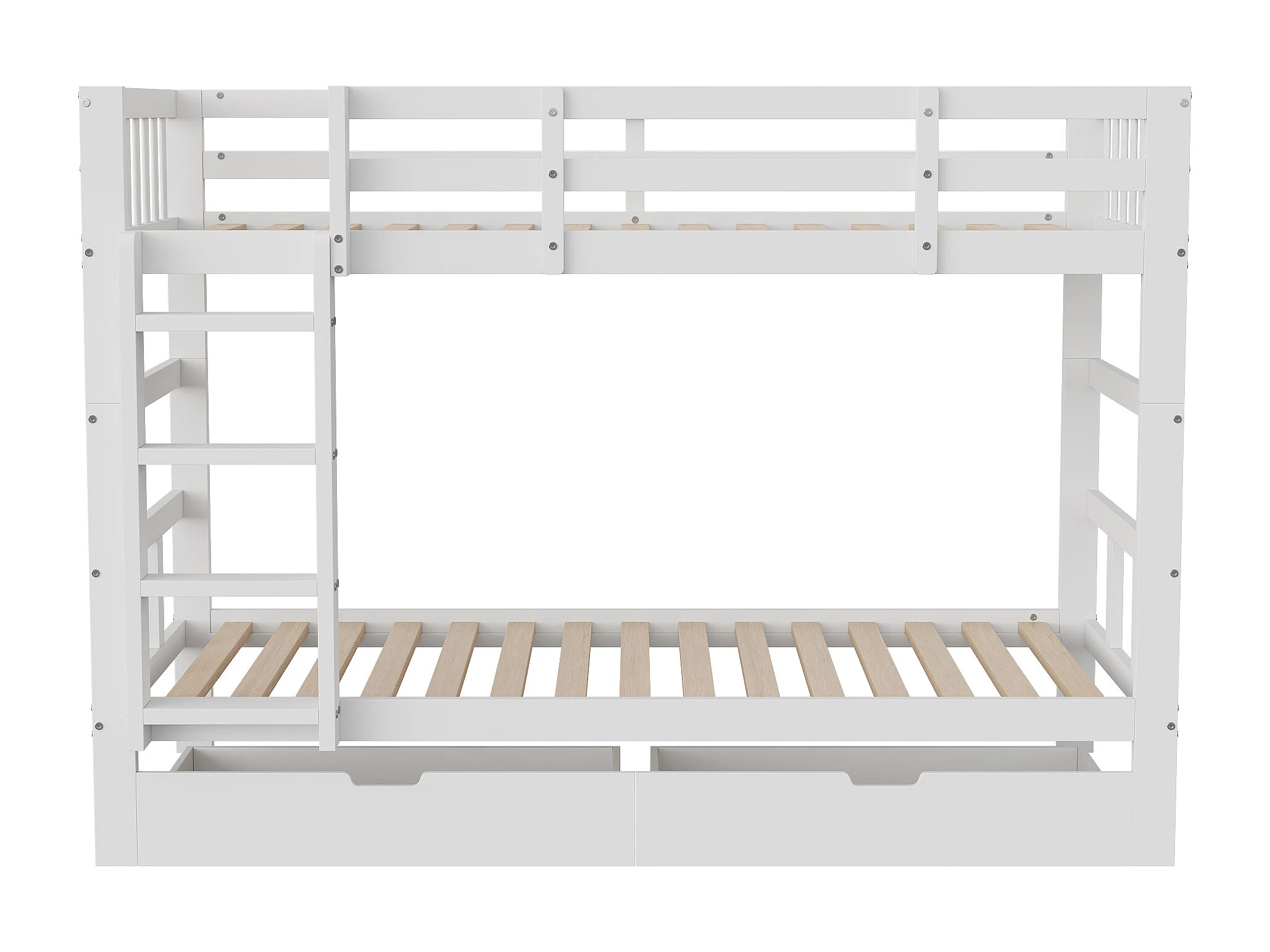 Lit Enfant 90x200 cm – Lit Double avec Tiroirs de Rangement et Sommier à Lattes – Bois – Blanc