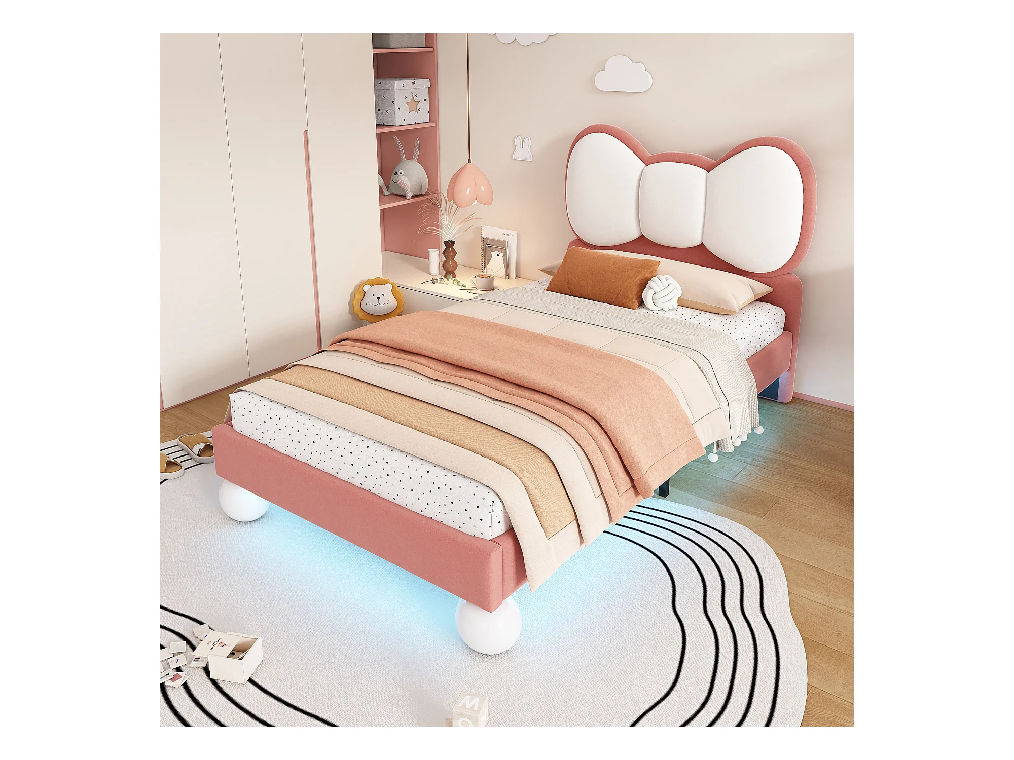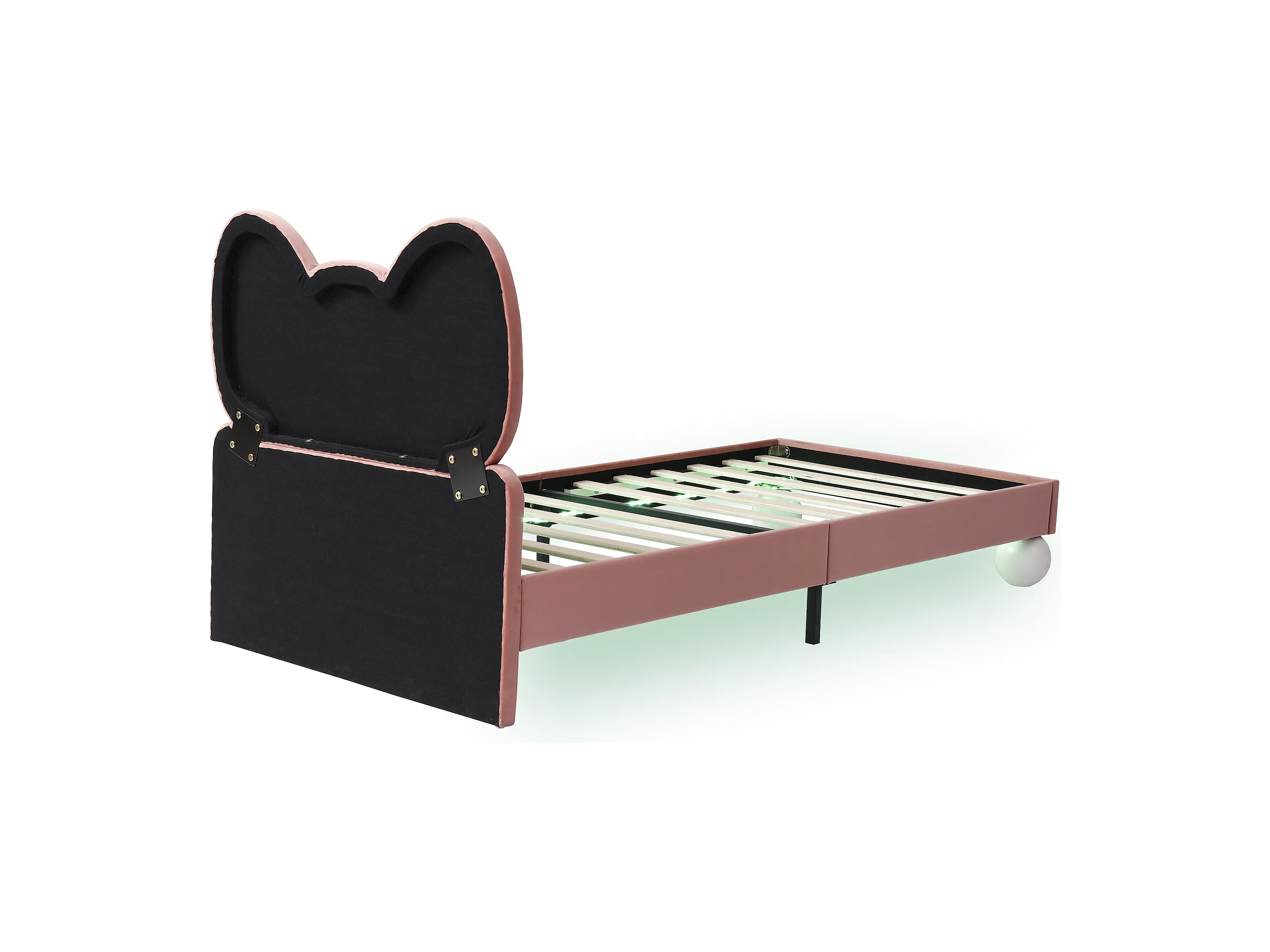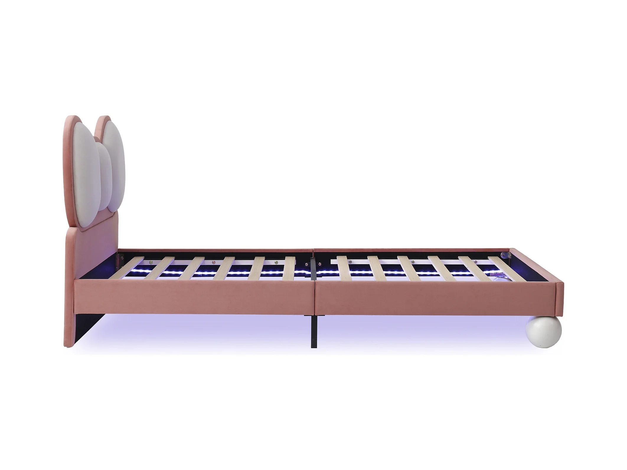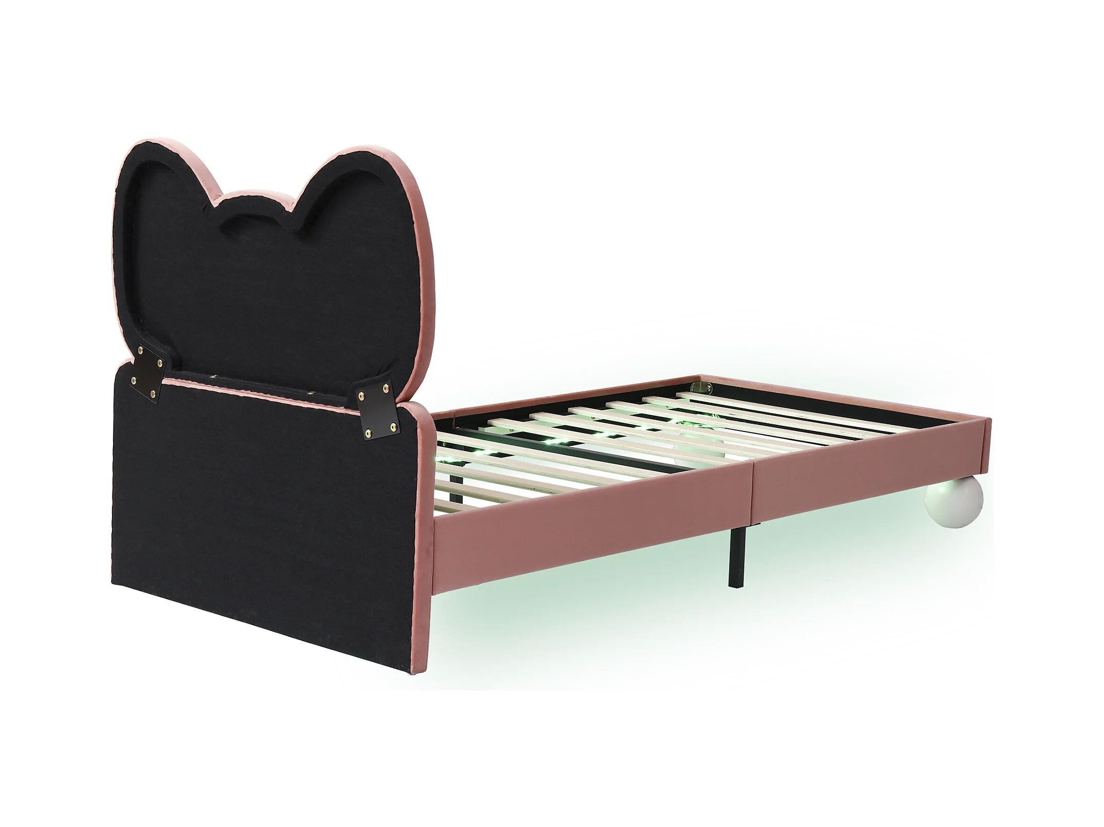 Lit enfant 90x200 cm, velours rose, lit simple avec tête de lit capitonnée et lumière LED - sans matelas