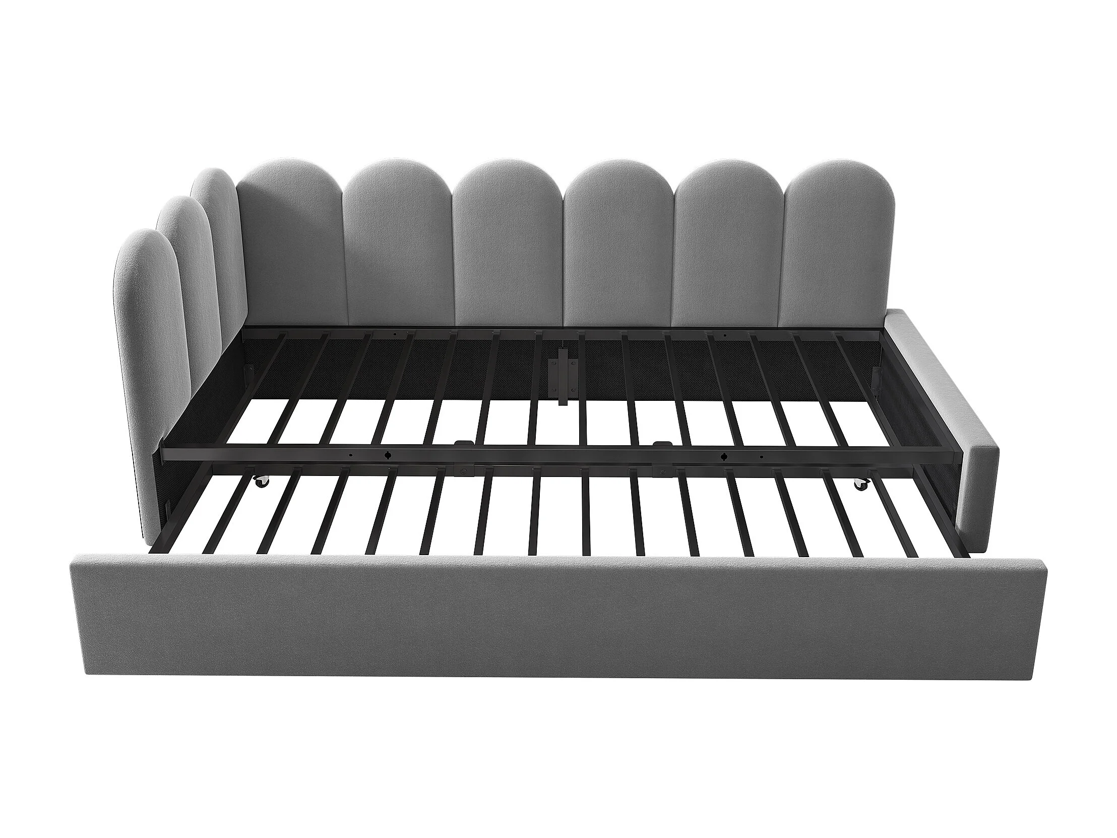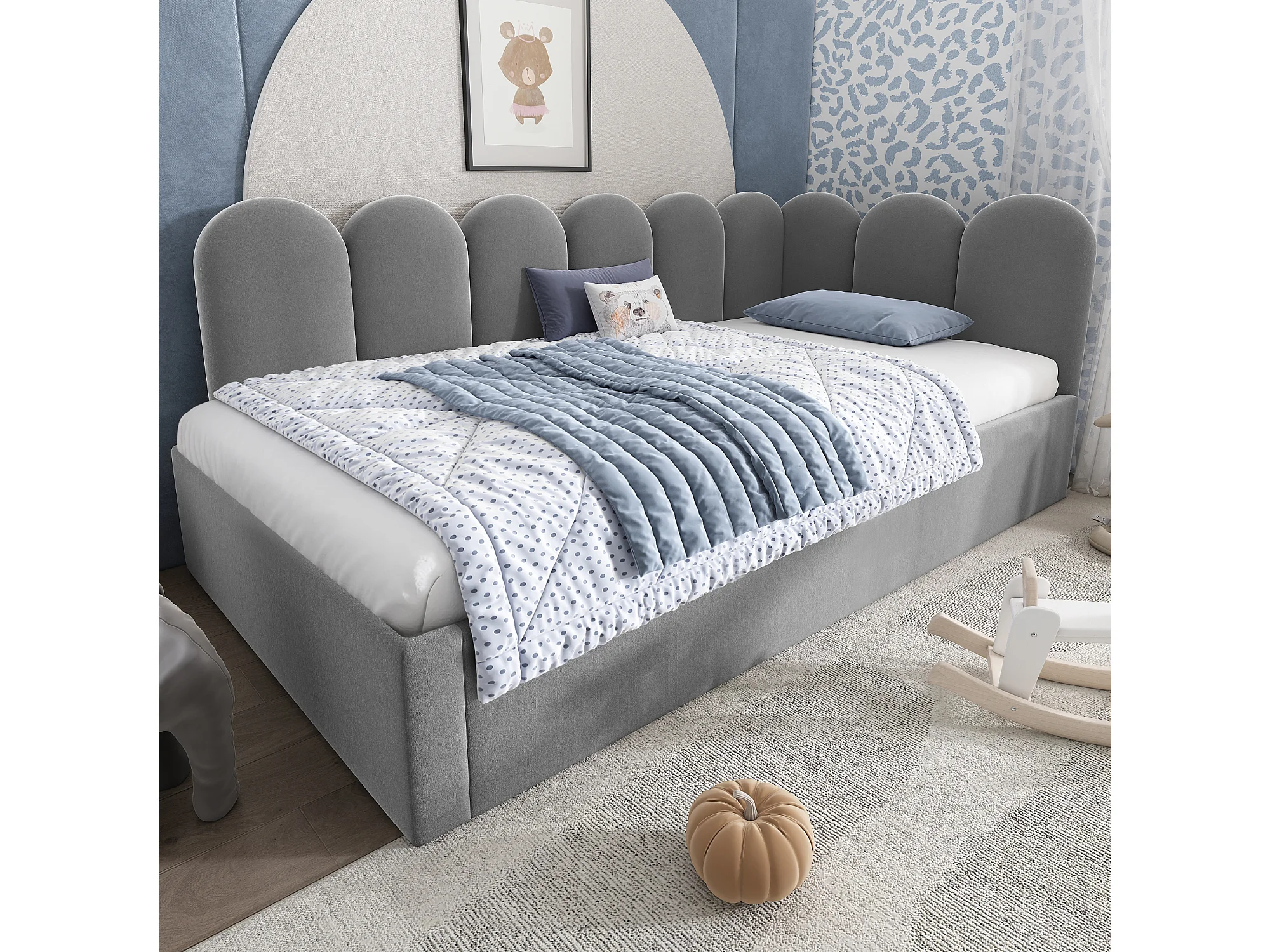 Lit enfant 90x200cm avec lit gigogne 90x190cm, en velours gris, sans matelas