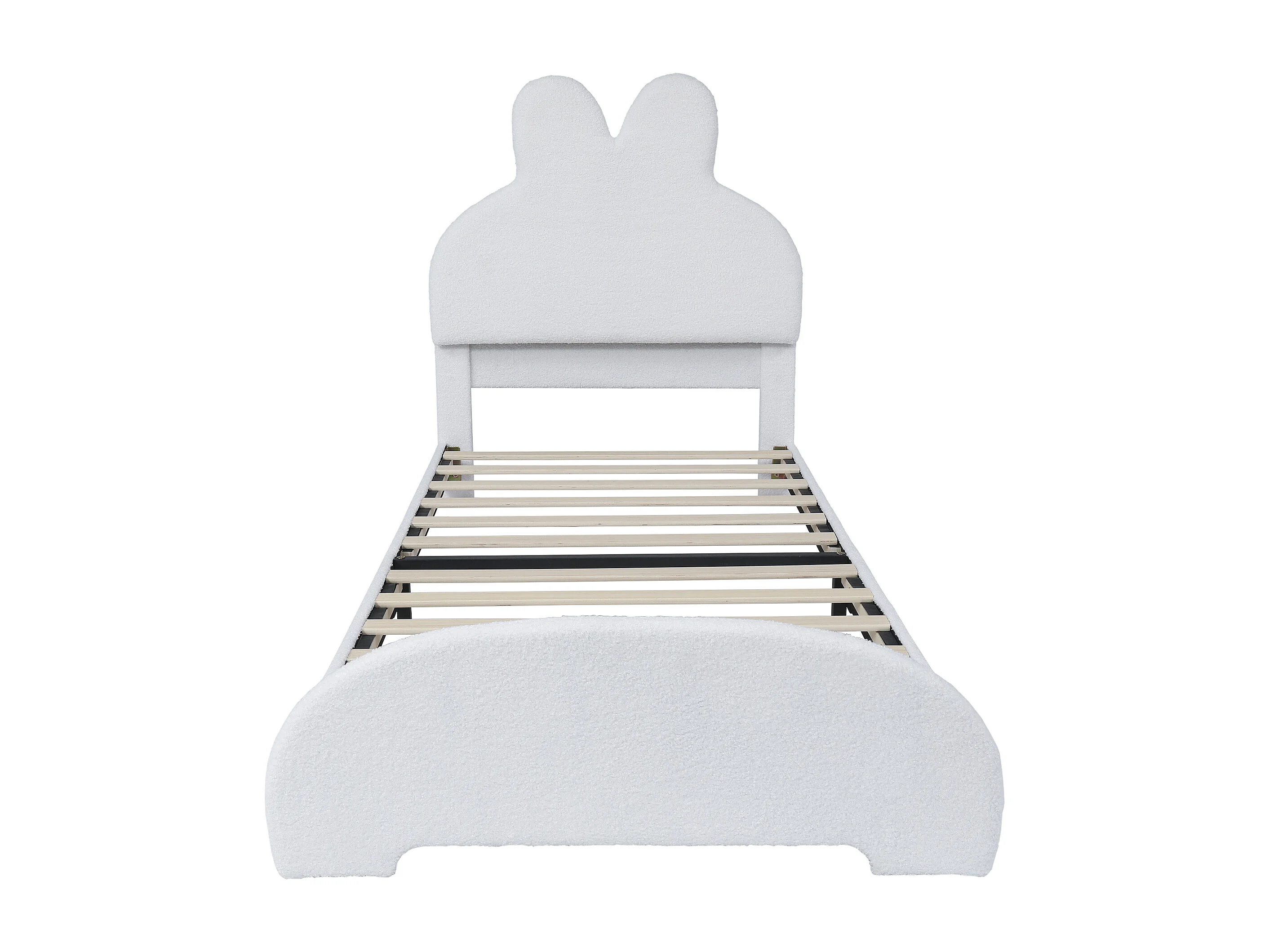 Cadre de lit simple en forme d'oreilles de lapin 90x200cm en velours blanc (sans matelas)