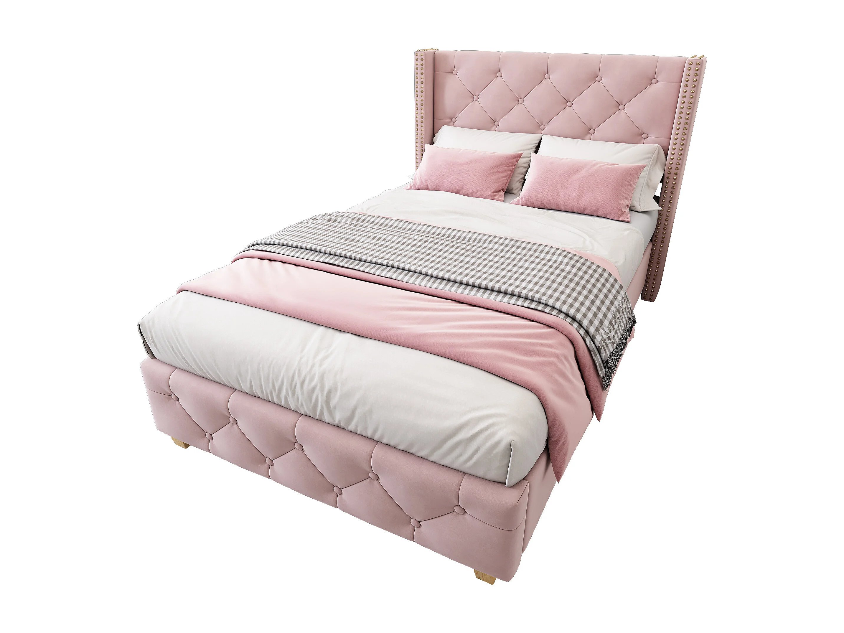 Lit enfant 90x200cm en velours rose- Pieds en bois (sans matelas)