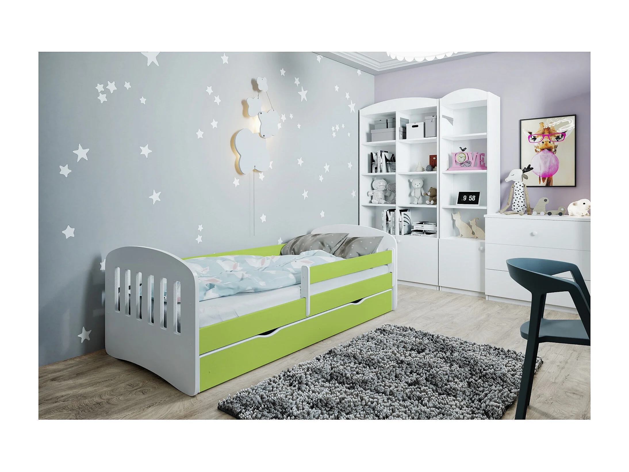 Lit enfant avec barrière de sécurité amovible vert Klaky-80x180