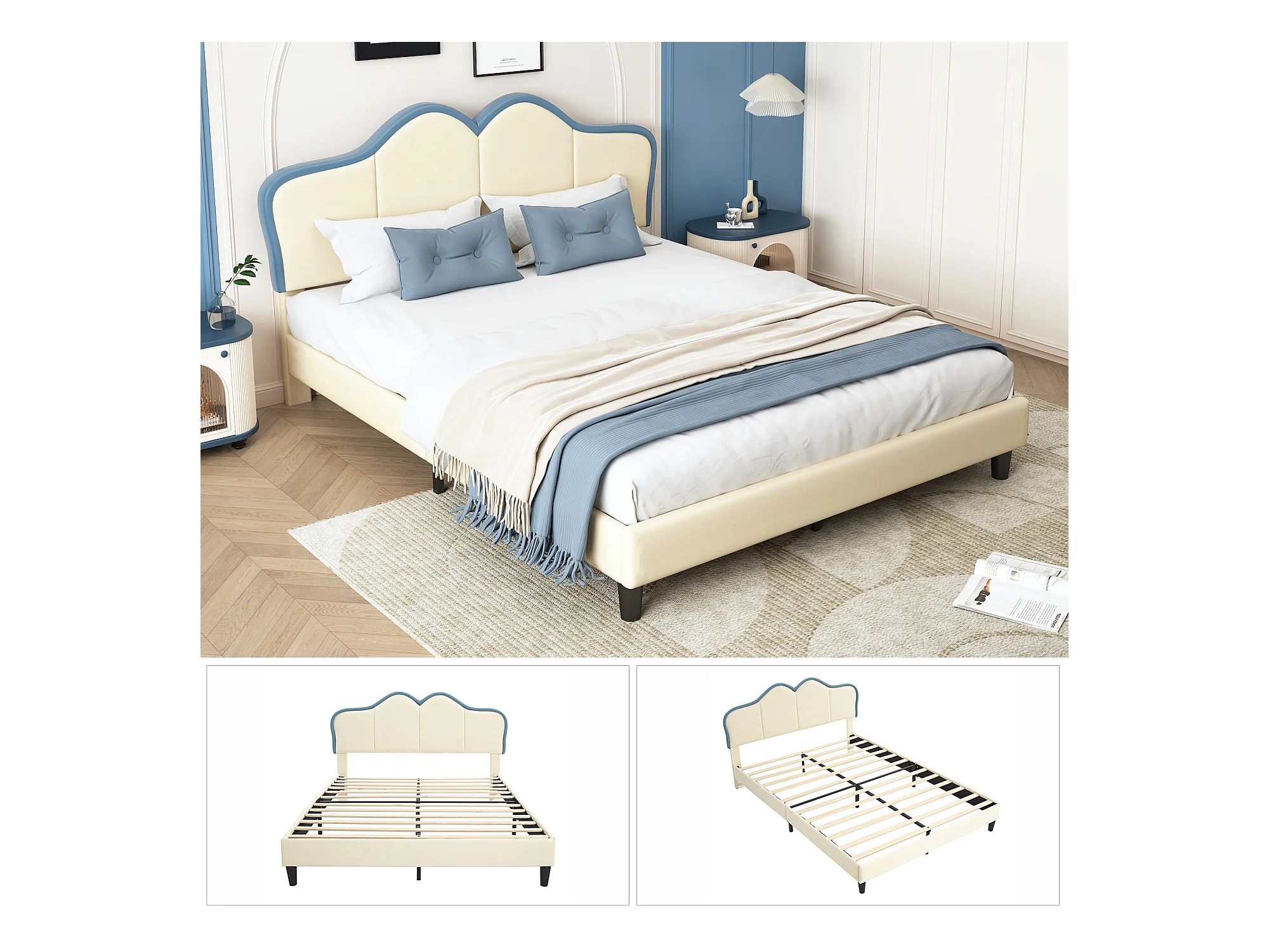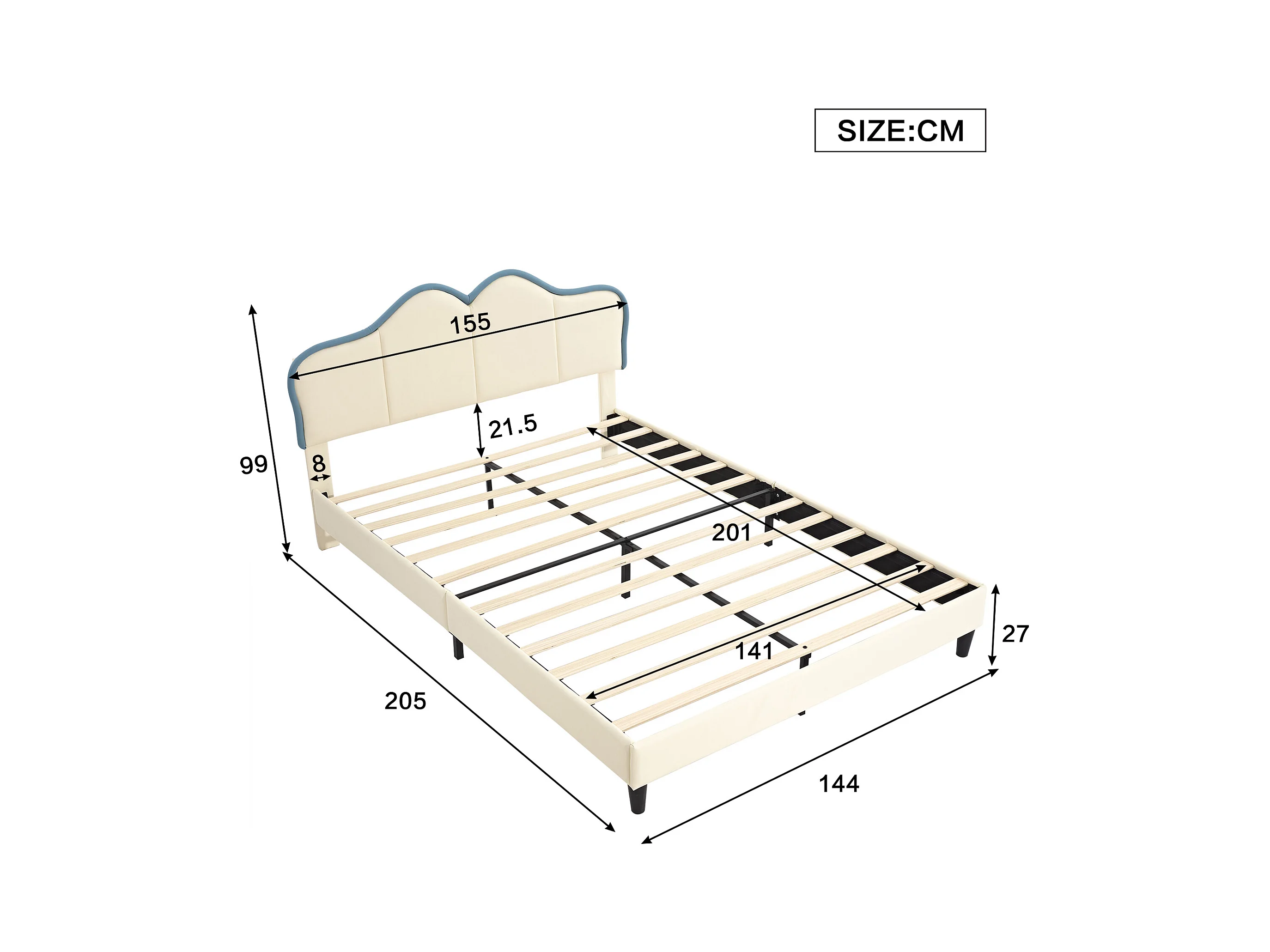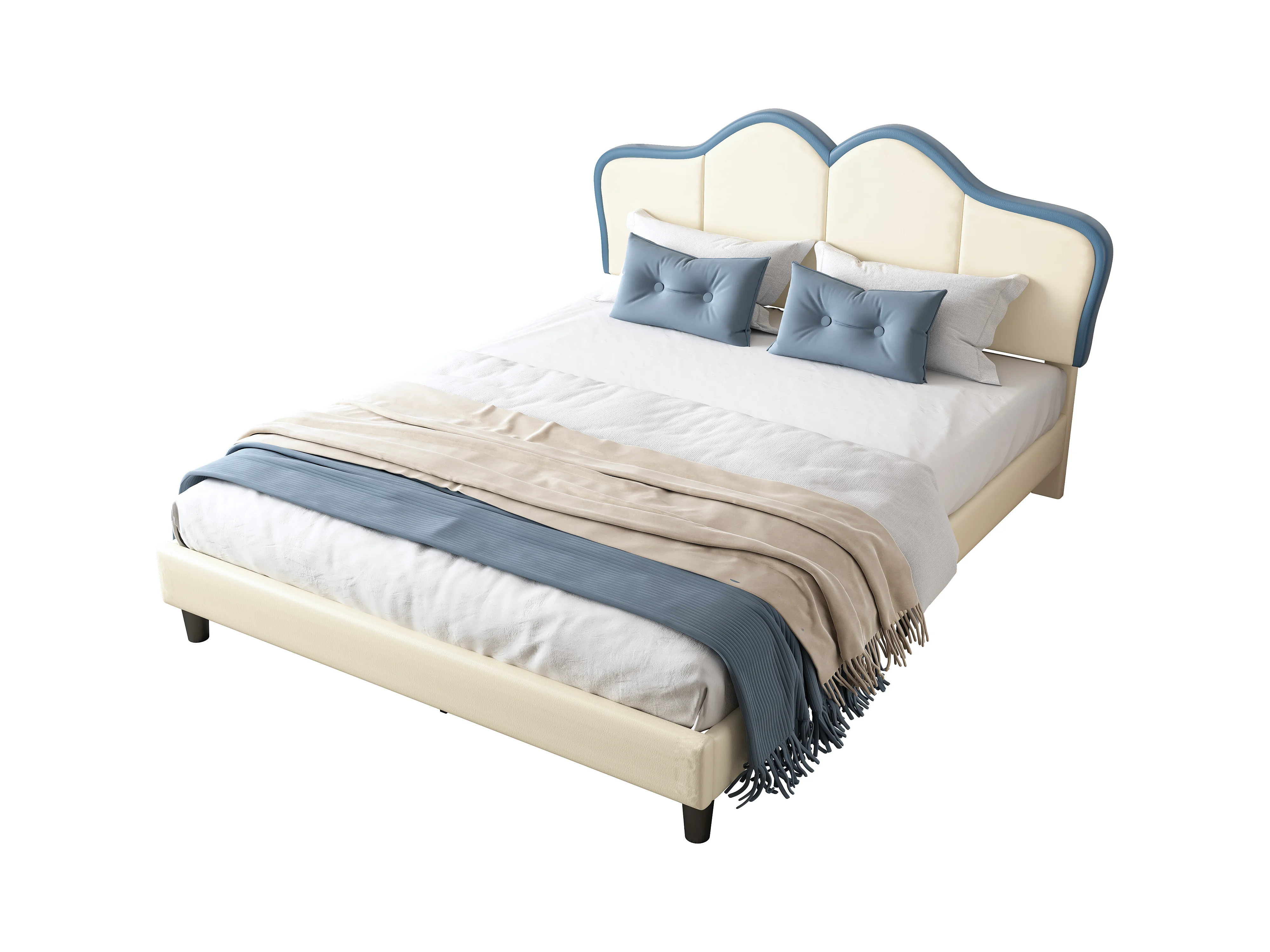 Lit enfant avec protection, tête de lit élégante, pieds stables, PU et bois, blanc + bleu, 140x200cm