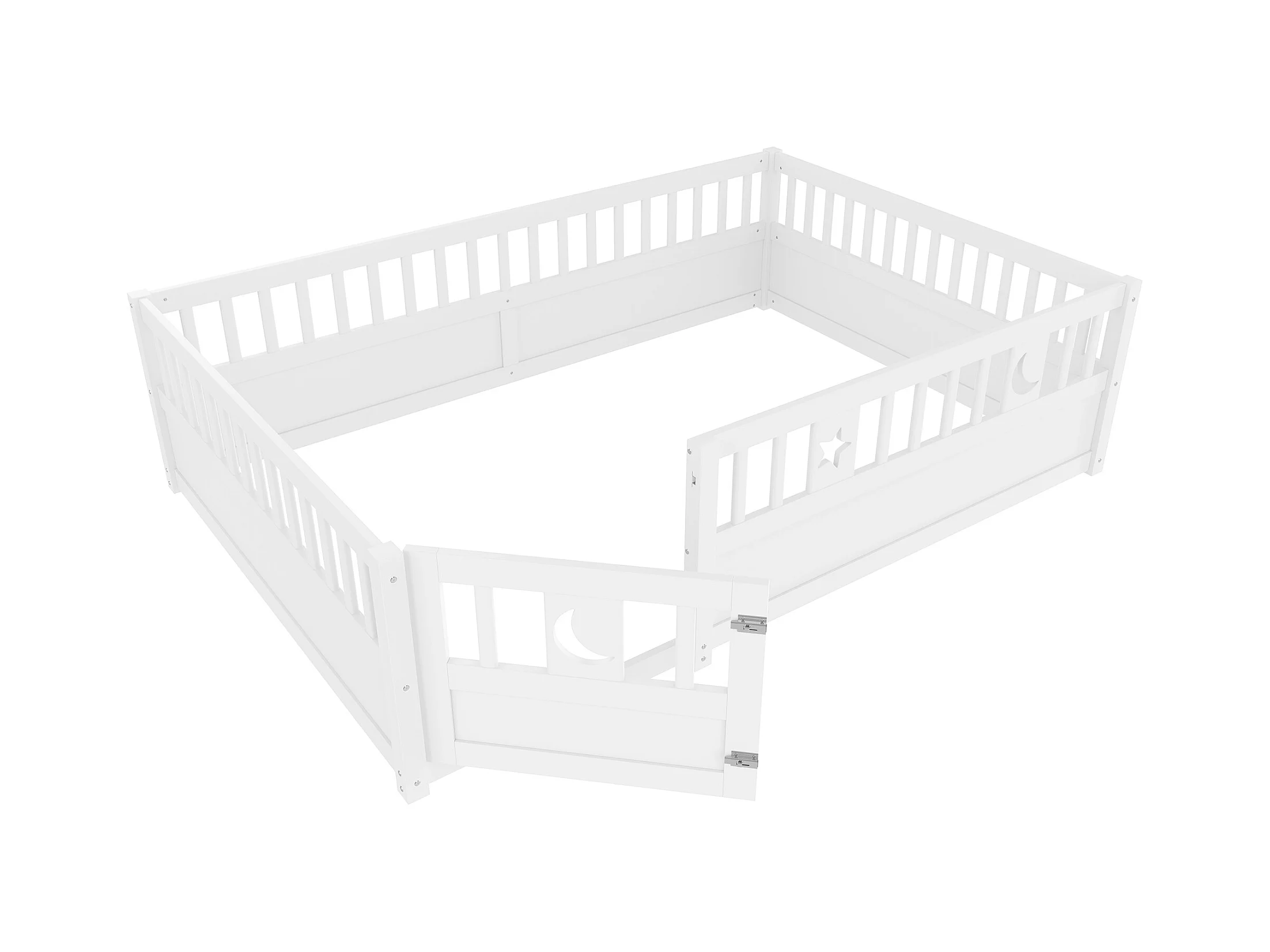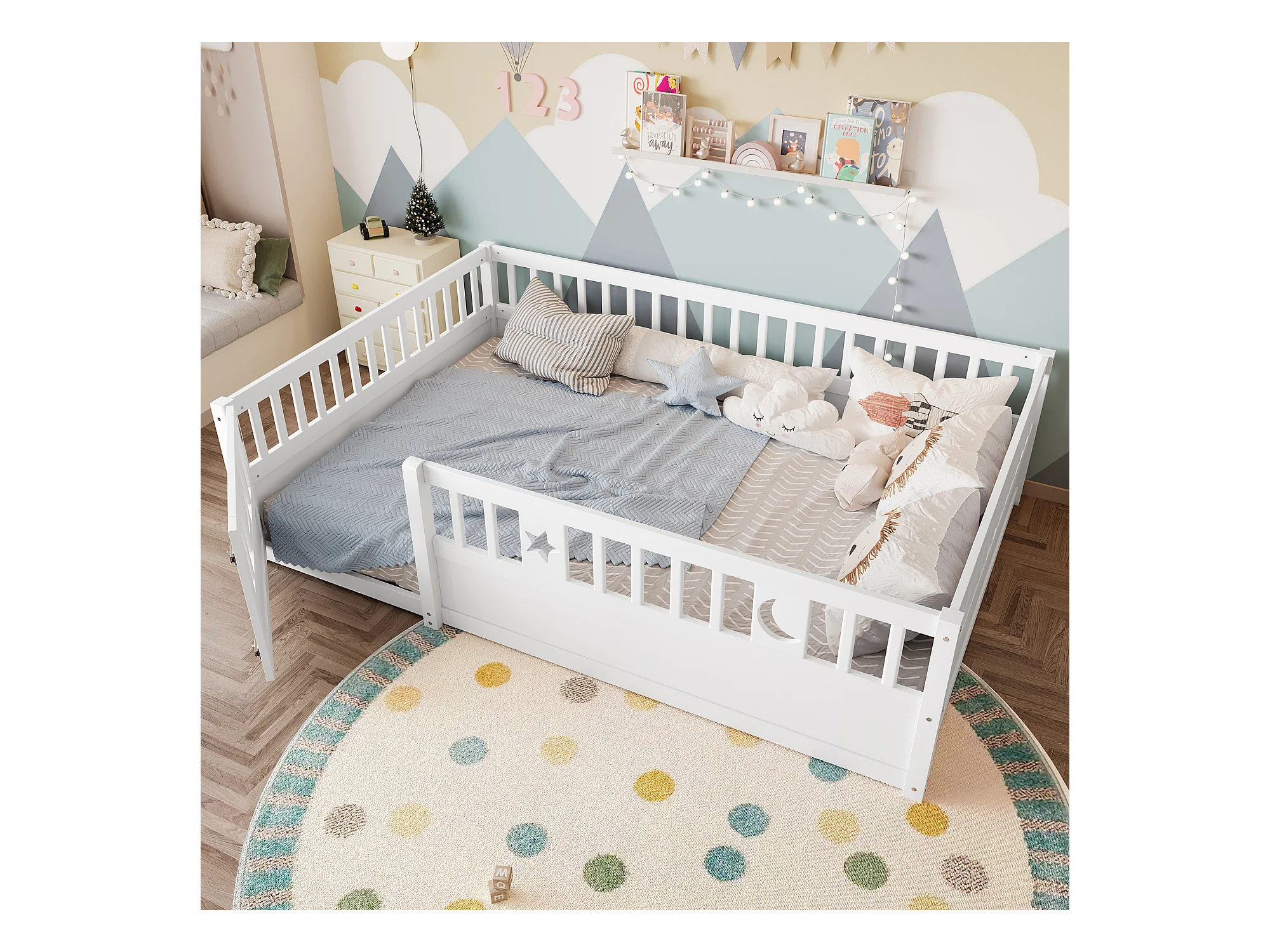 Lit enfant 140x190 cm avec barrières de sécurité et sommier à lattes en bois, blanc - sans matelas