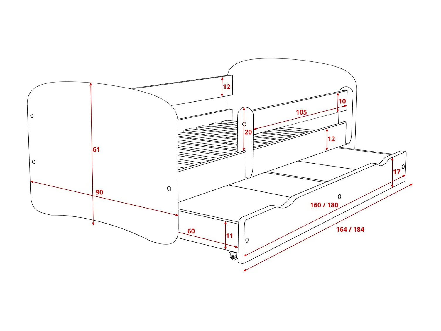 Lit enfant blanc avec sommiers et barrière de sécurité amovible Drimy-80x180