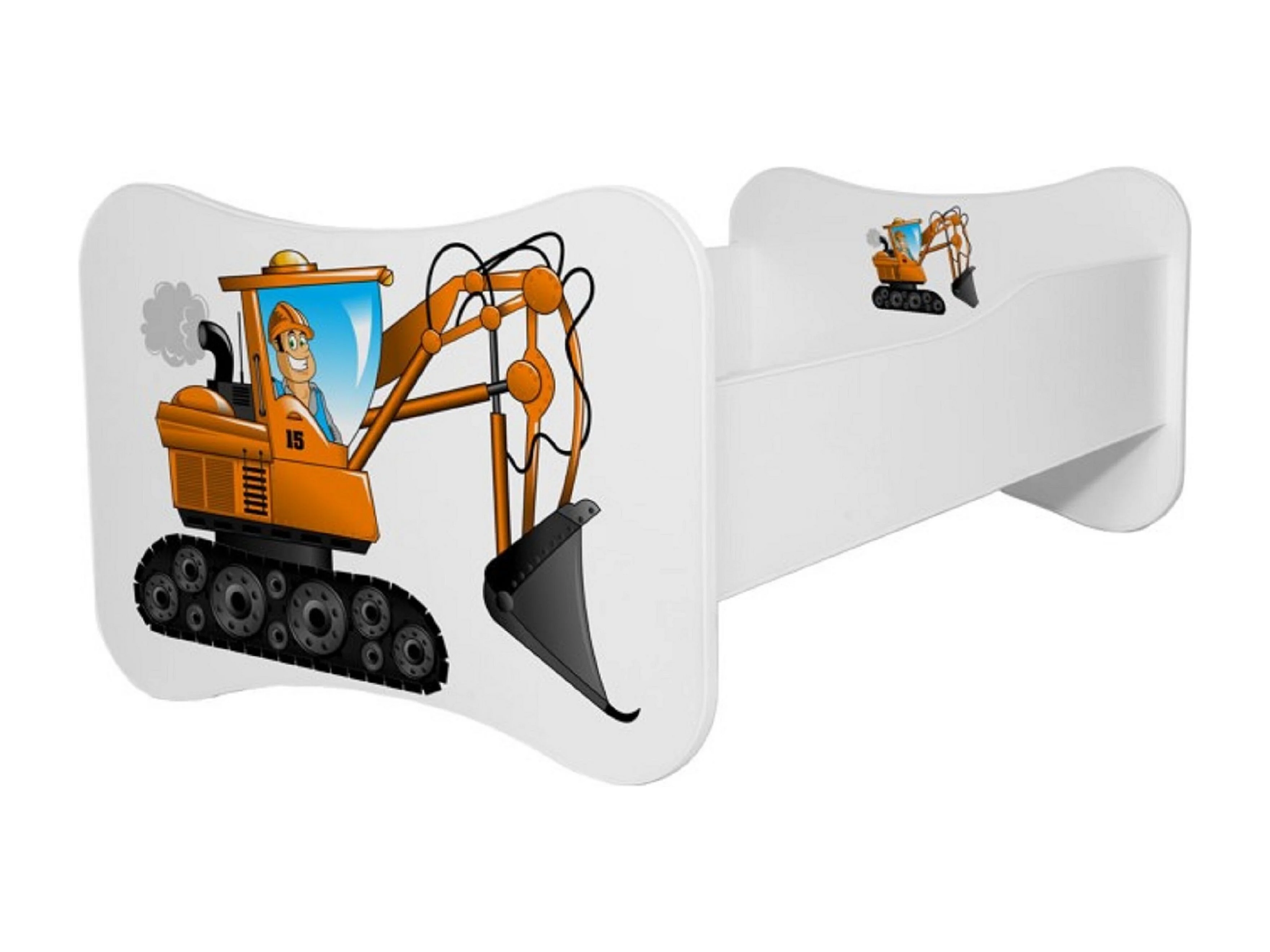 Lit enfant bois blanc imprimé pelleteuse 70x140 ou 80x160 - Sommier et matelas inclus - Ondula-70x140