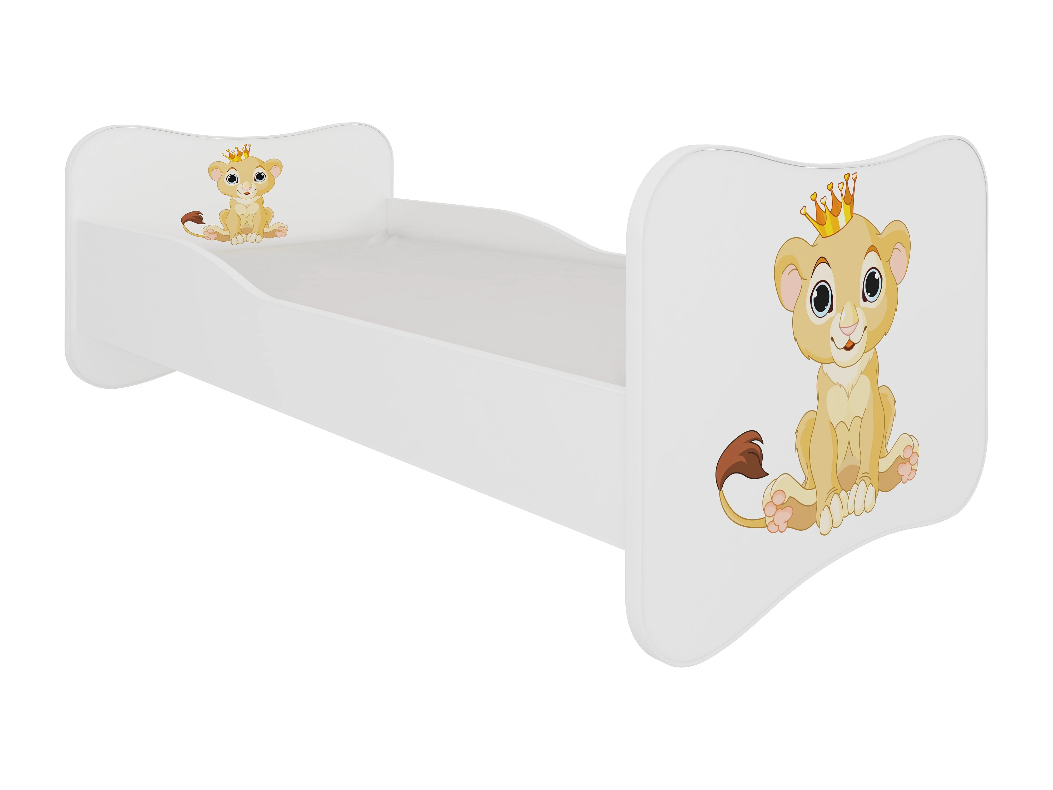 Lit enfant bois blanc imprimé petit roi lion 70x140 ou 80x160 - Sommier et matelas inclus - Ondula-70x140