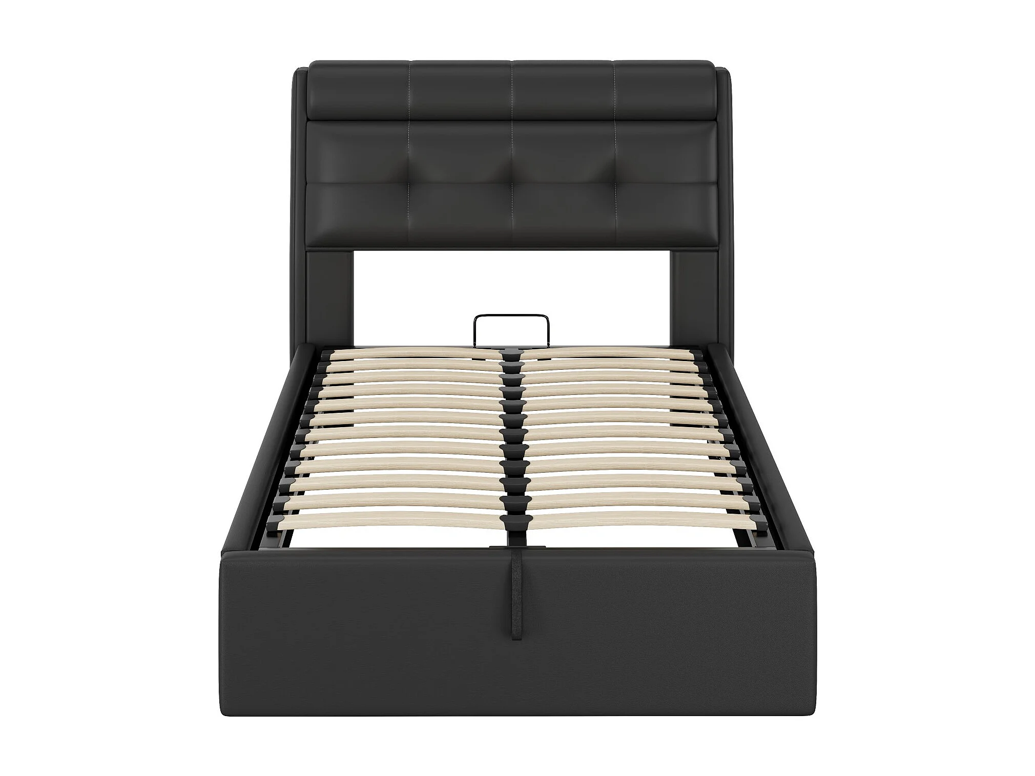 Lit coffre 90x200 cm avec sommier à lattes - tête de lit avec rangement - similicuir - noir (sans matelas)