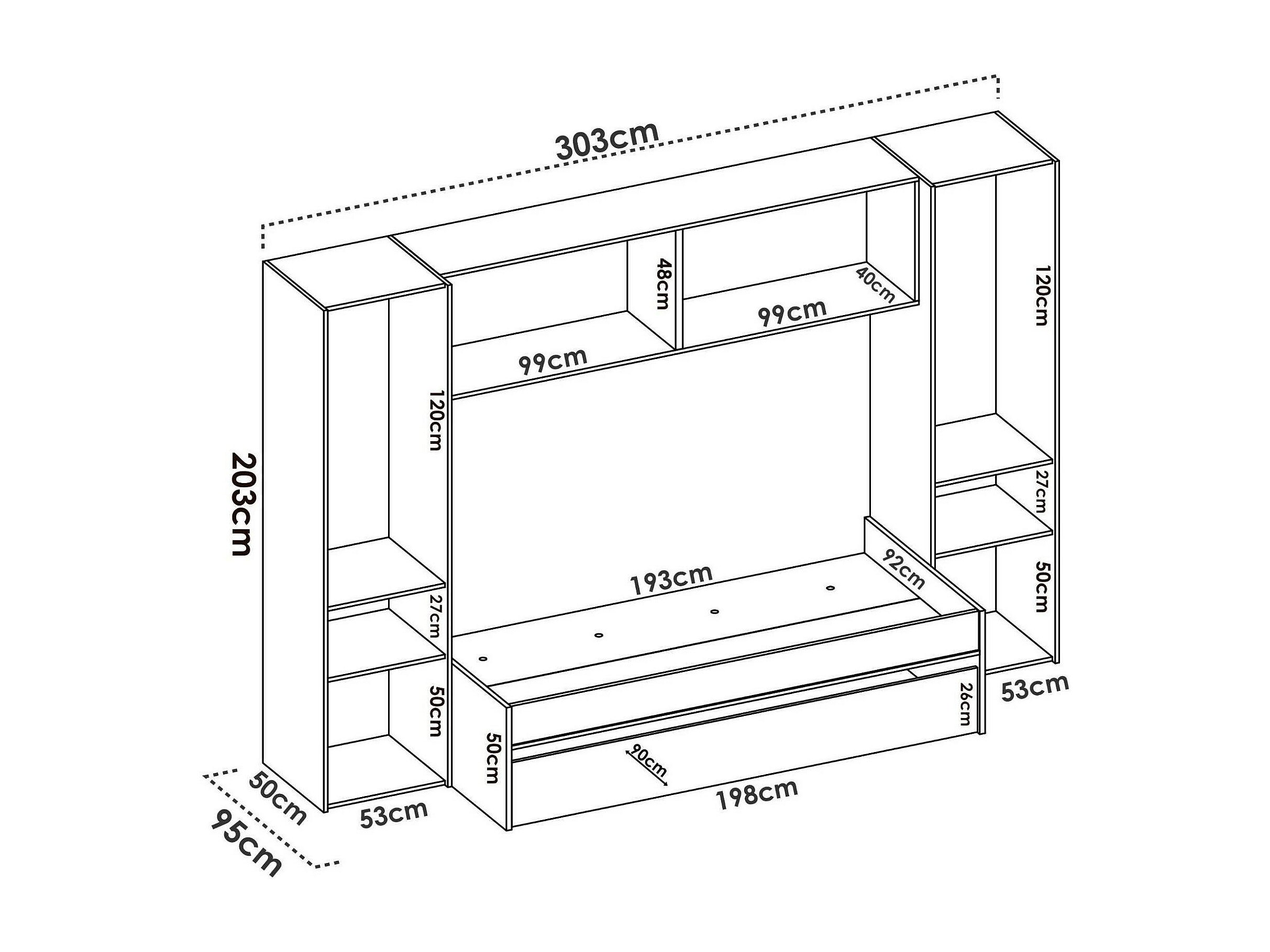 Lit enfant Dmra, Chambre complète avec armoire bridge et commode, Composition avec lit et lit simple extractible, 303x97h203 cm, Chêne et Blanc