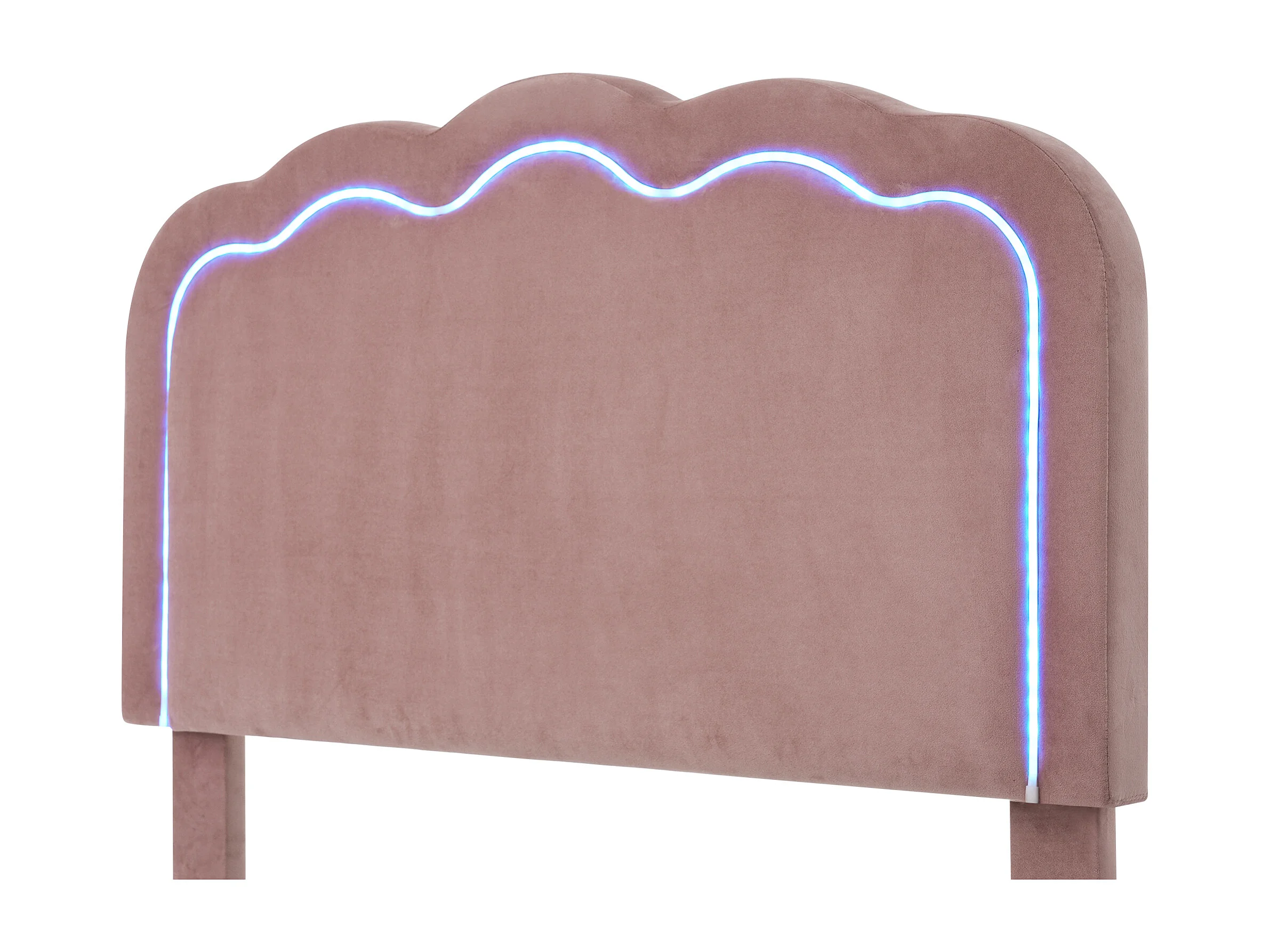 Lit enfant 90x200cm avec sommier - tête de lit réglable à LED - cadre de lit en bois - velours rose (sans matelas)