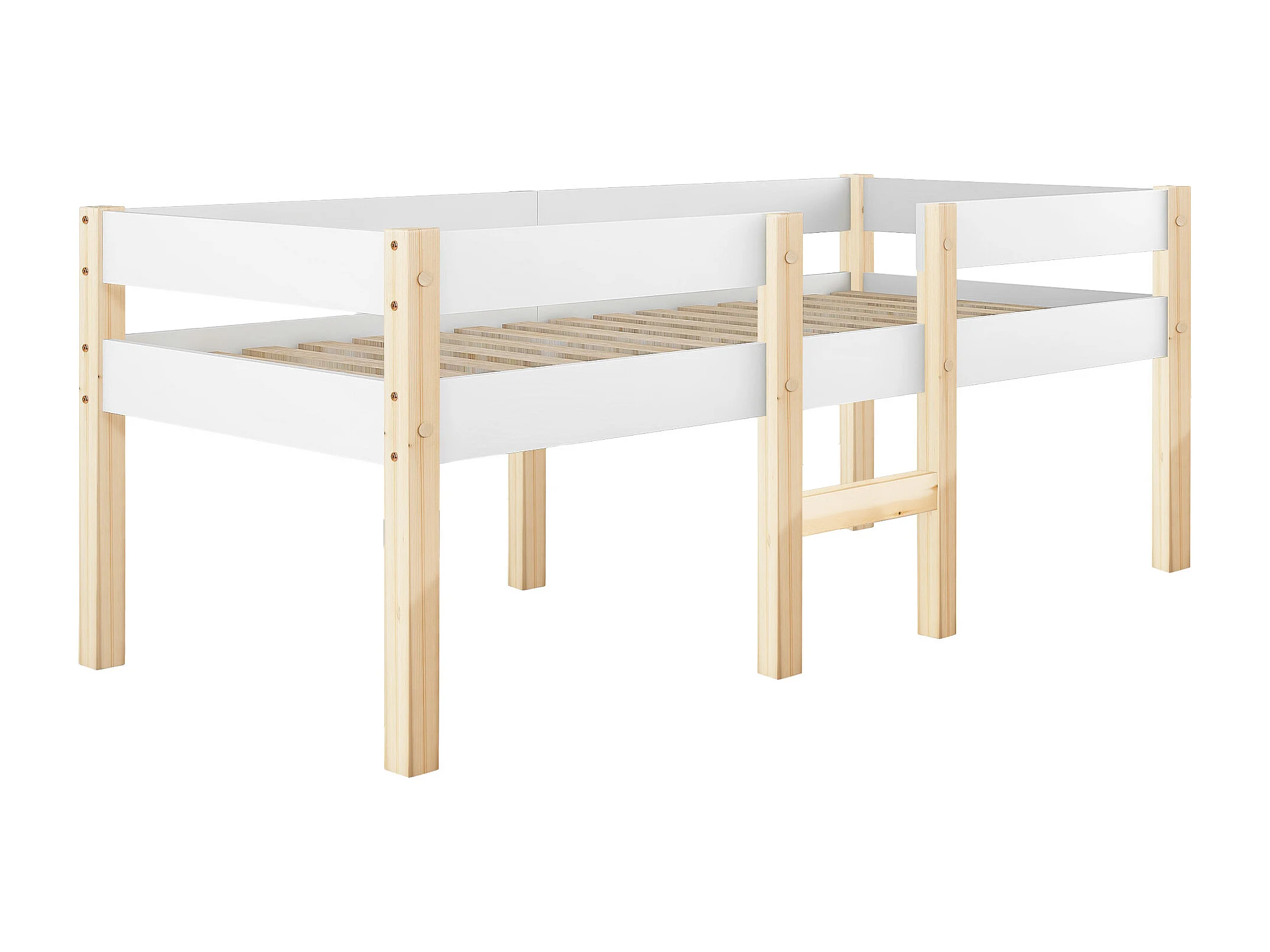 Lit mi hauteur enfant 90x190 cm en pin - avec protection contre les chutes, blanc et chêne(sans matelas)