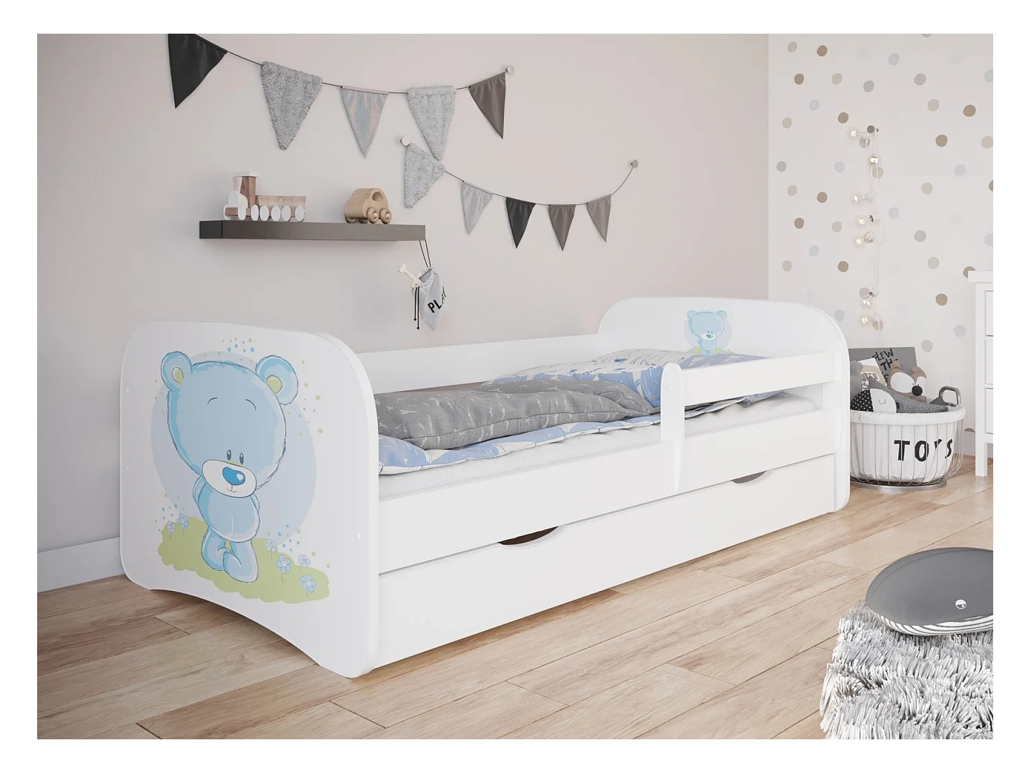 Lit enfant nounours avec sommiers et barrière de sécurité amovible Drimy-Matelas mousse-70x140-Tiroirs Avec tiroir