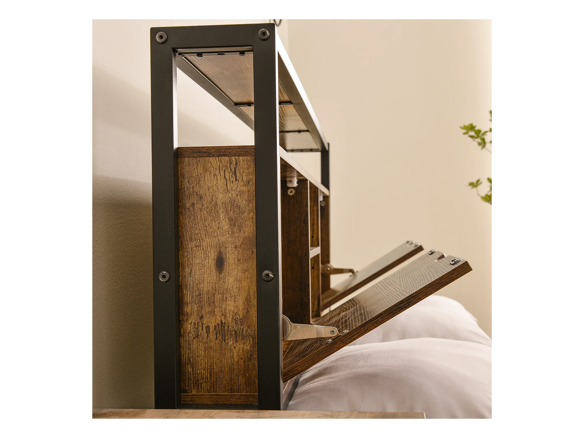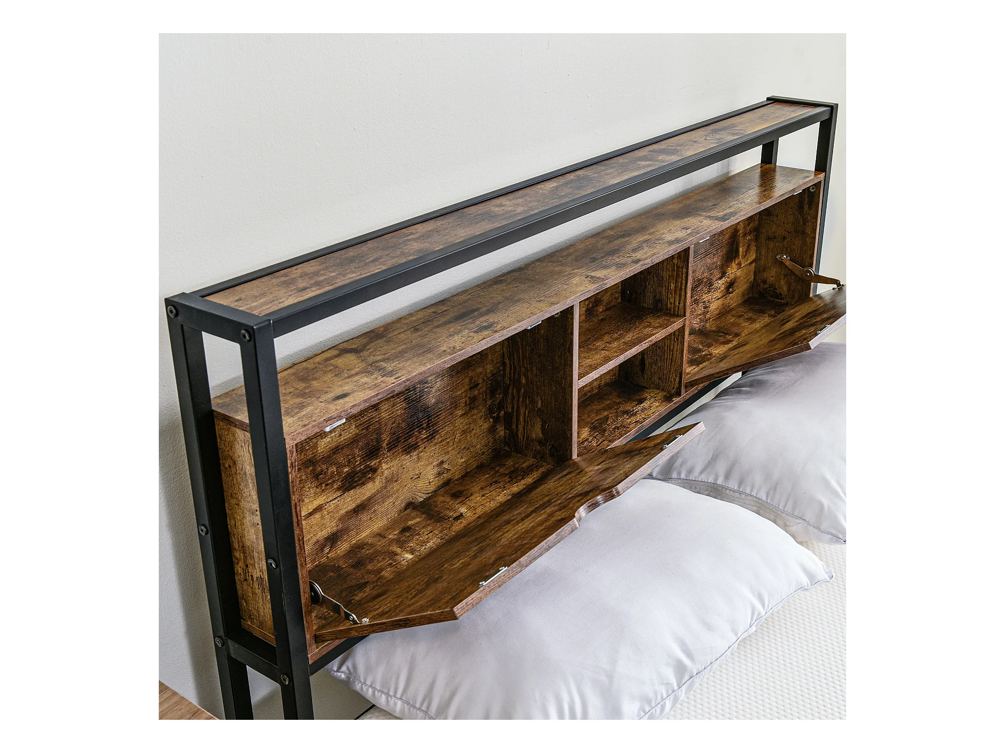 Lit en métal 140 x 200 cm avec tête de lit rangement - style industriel - noir