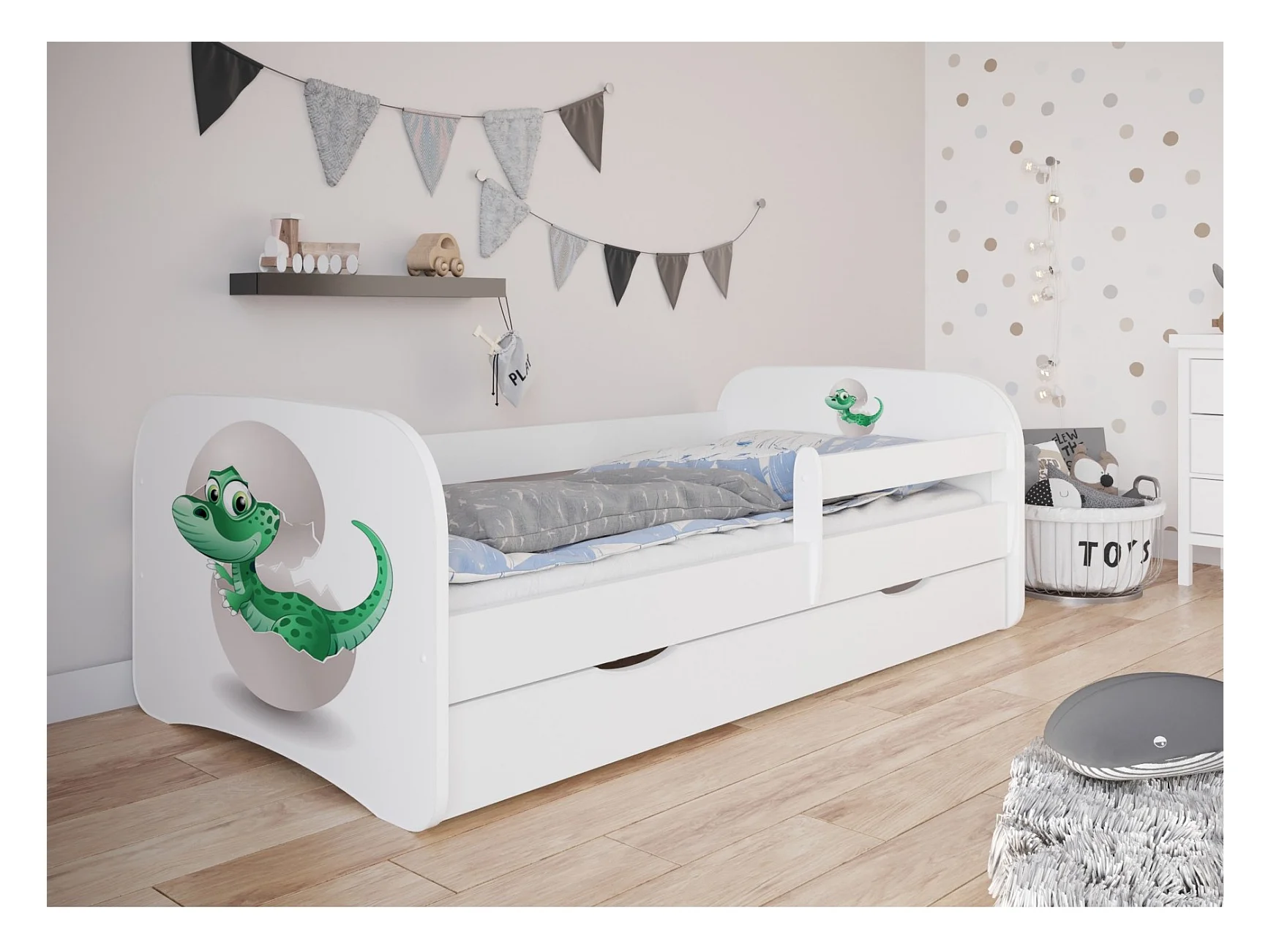 Lit enfant petit dinosaure avec sommiers et barrière de sécurité amovible Drimy-Matelas mousse-80x180