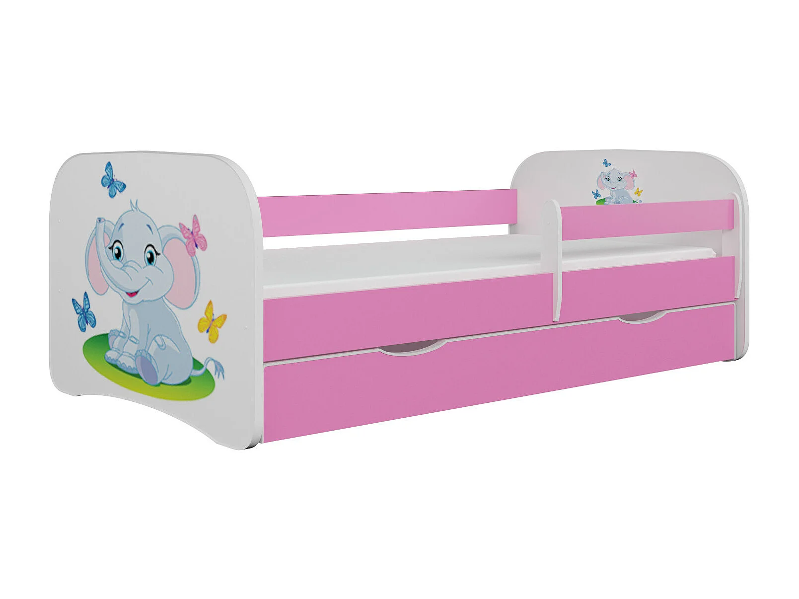 Lit enfant rose petit éléphant avec sommiers et barrière de sécurité amovible Drimy-80x160-Tiroirs Avec tiroir