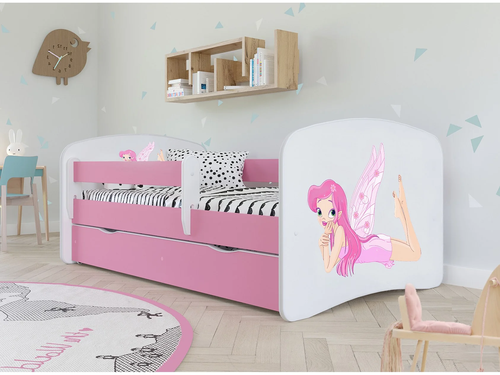 Lit enfant rose petite fée avec sommiers et barrière de sécurité amovible Drimy-70x140-Tiroirs Avec tiroir