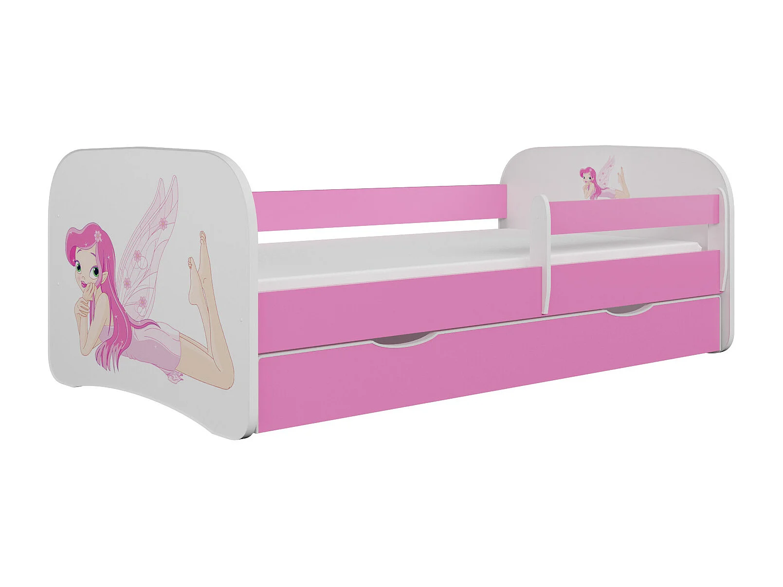 Lit enfant rose petite fée avec sommiers et barrière de sécurité amovible Drimy-Matelas mousse-80x160