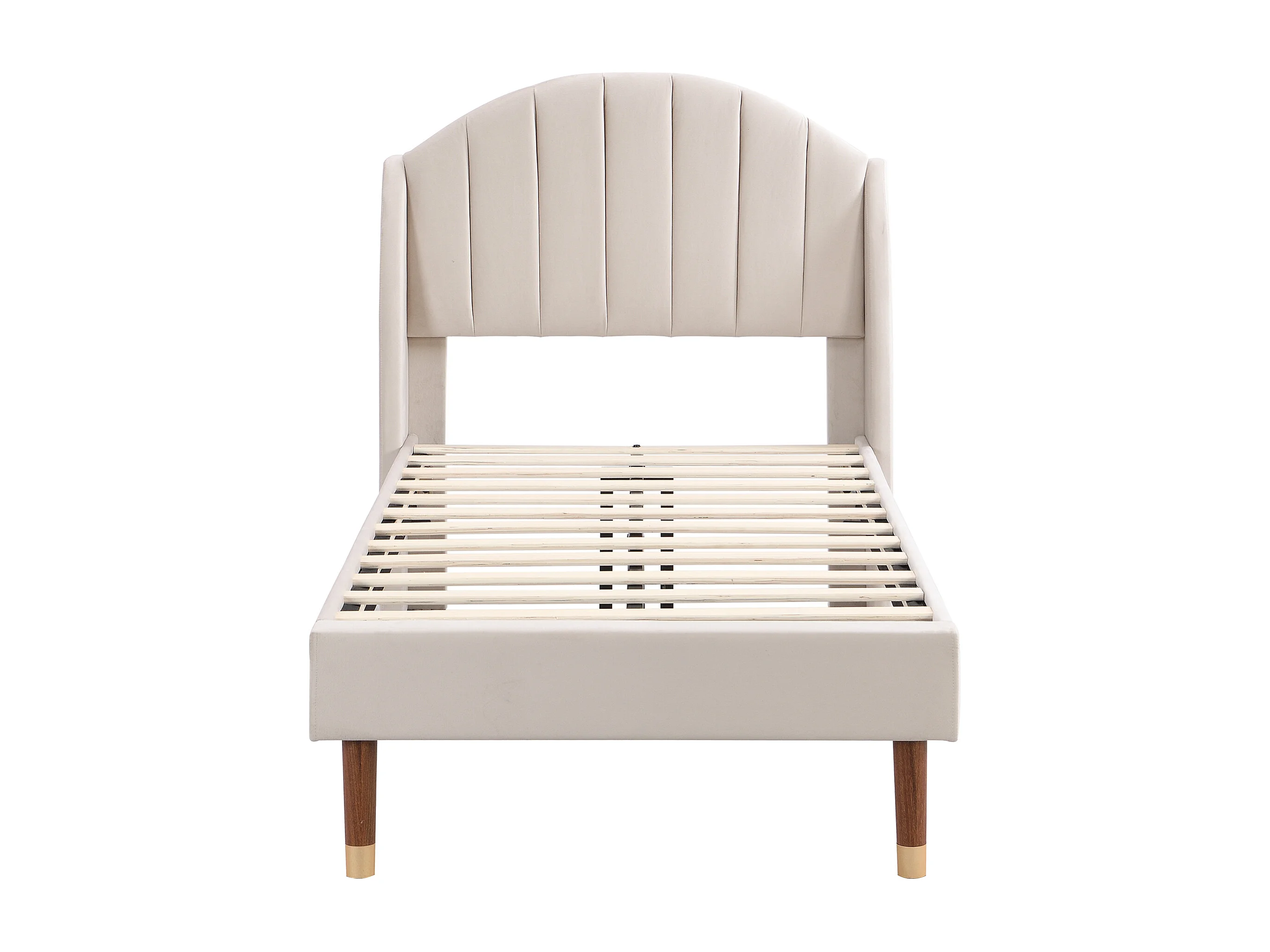 Lit capitonné 90x200 avec sommier à lattes, avec tête de lit, velours, beige (Sans matelas)