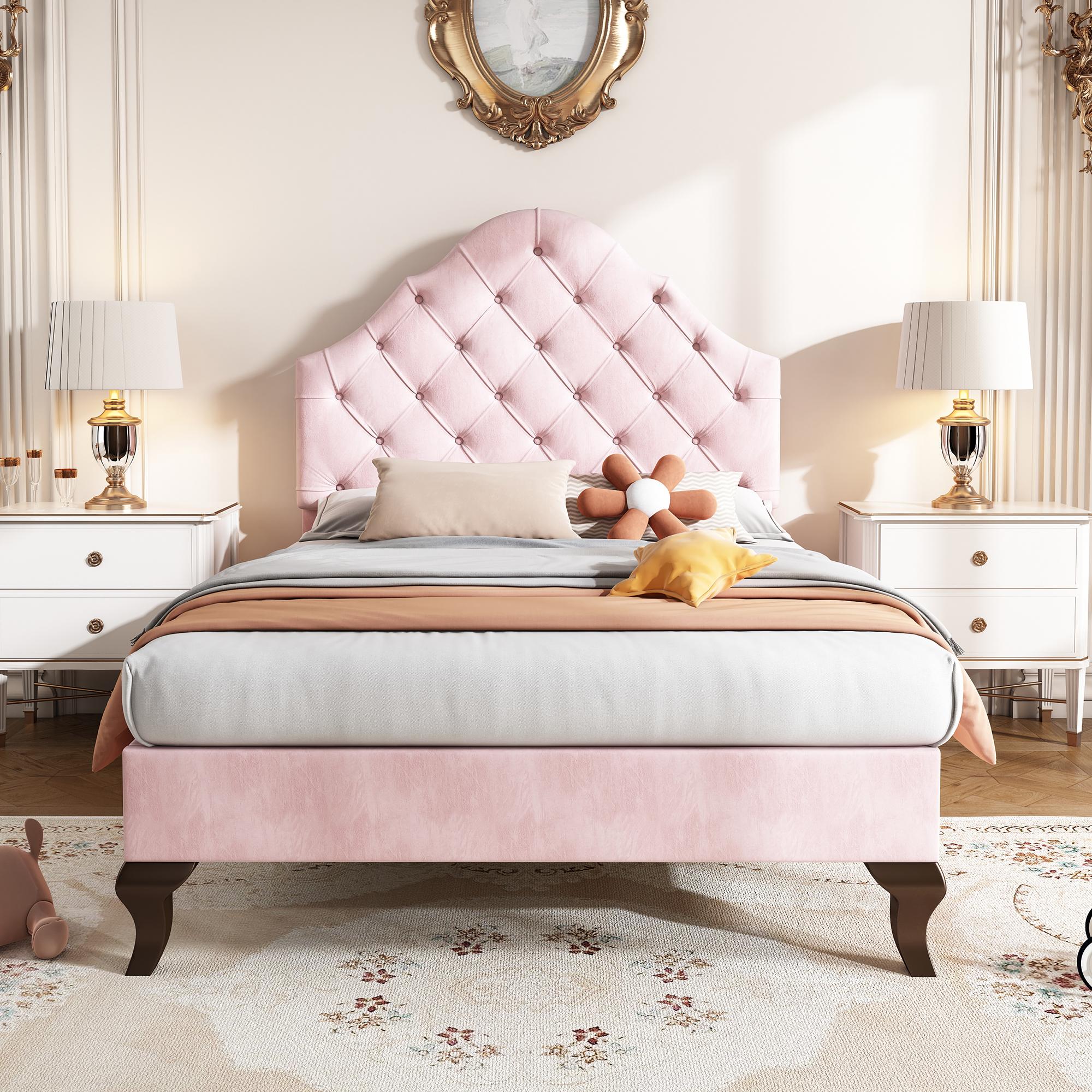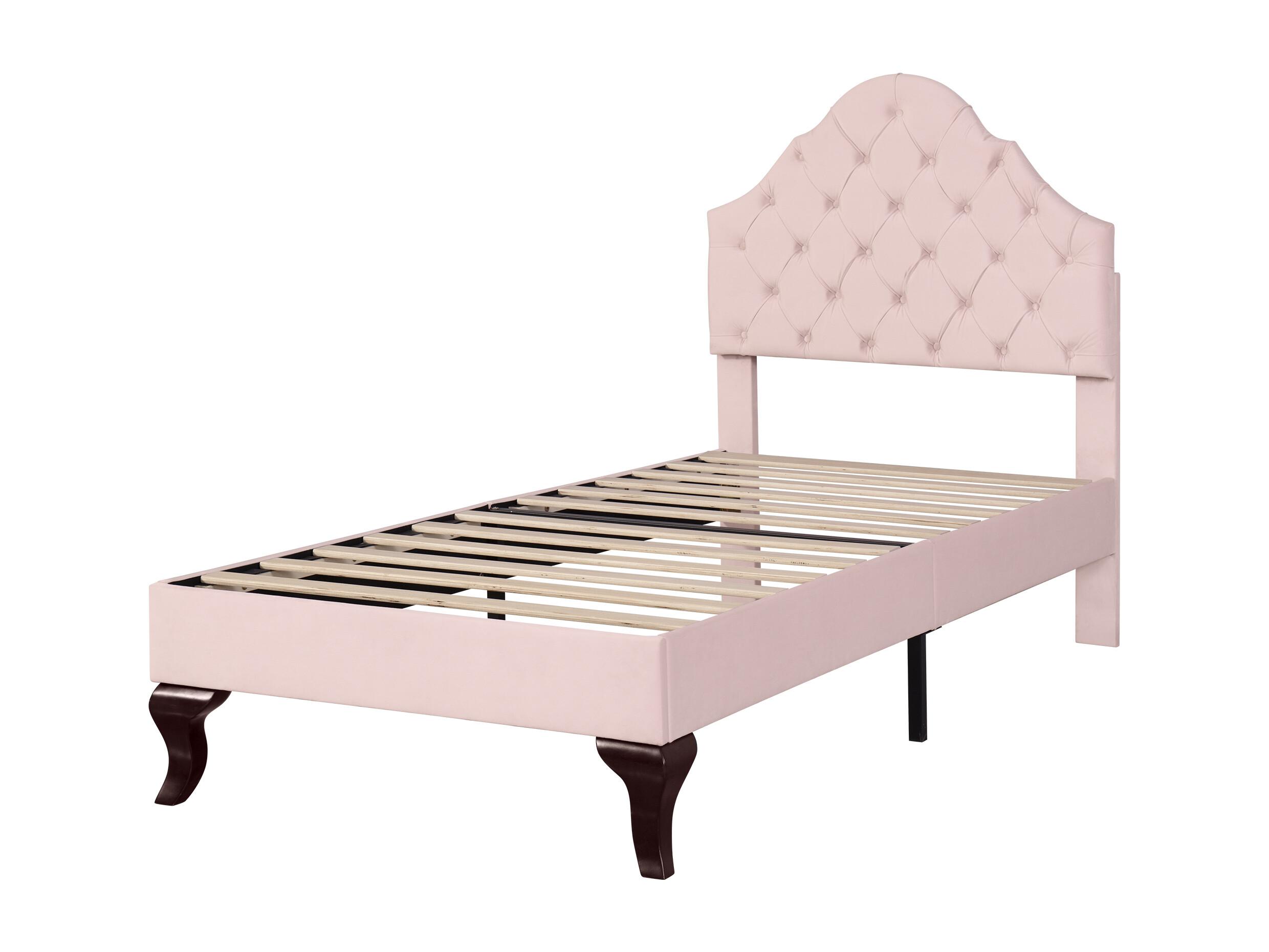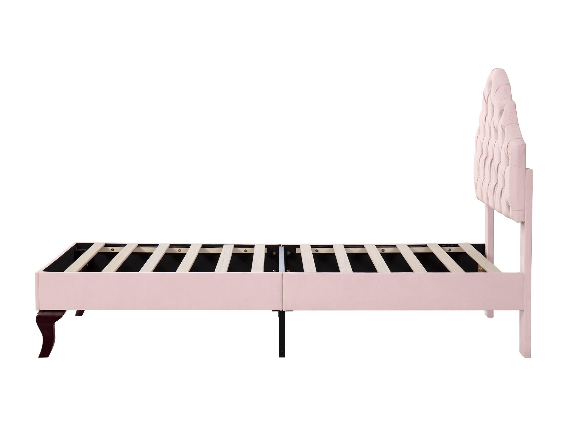 Lit adulte simple rembourré en velours, avec sommier à lattes en bois, tête de lit réglable en forme de coquille, pieds en fer doré, 90x200cm rose