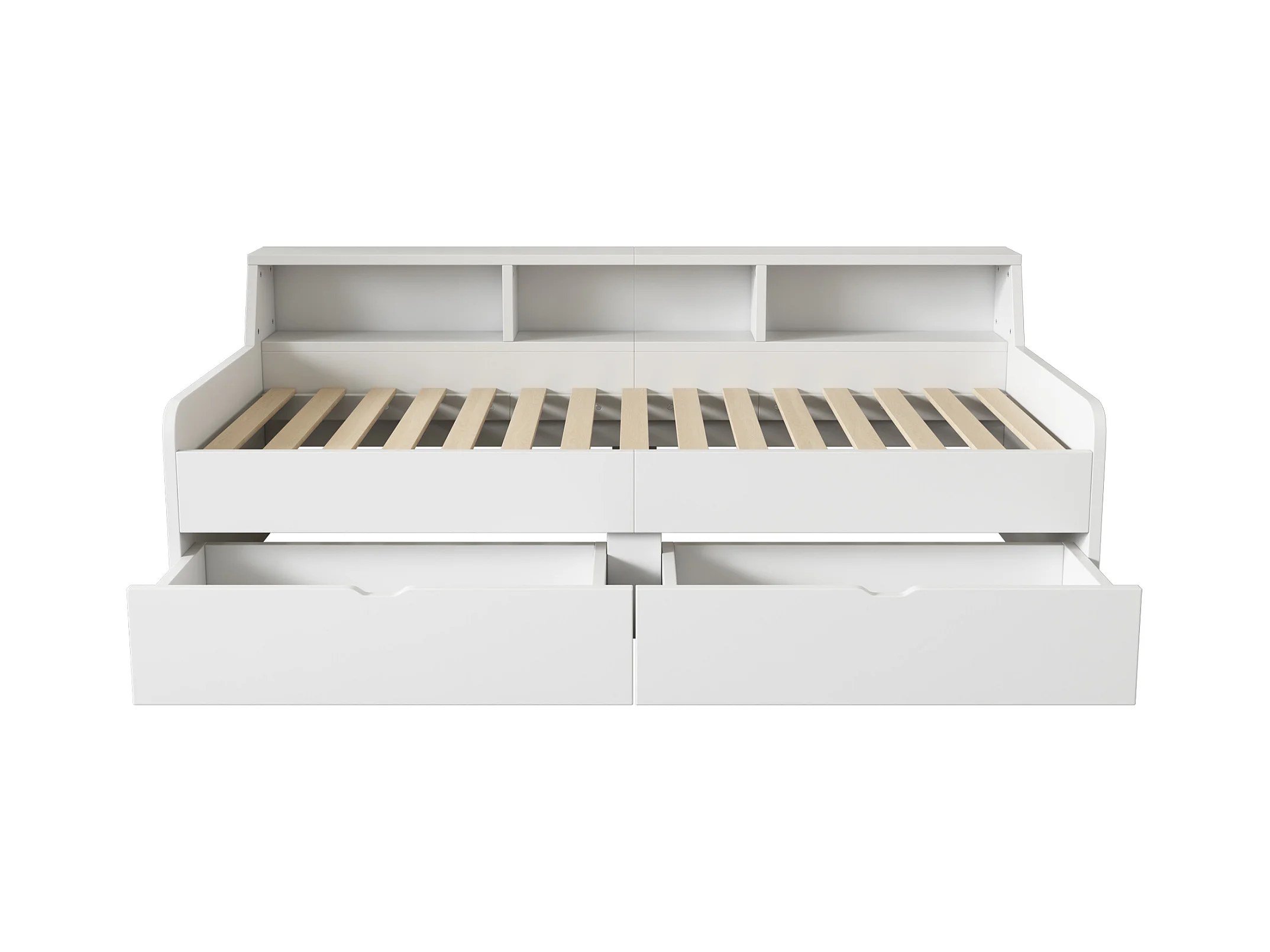 Lit enfant 90 x 200 cm - Lit ado avec 2 tiroirs - Bois blanc - sans matelas