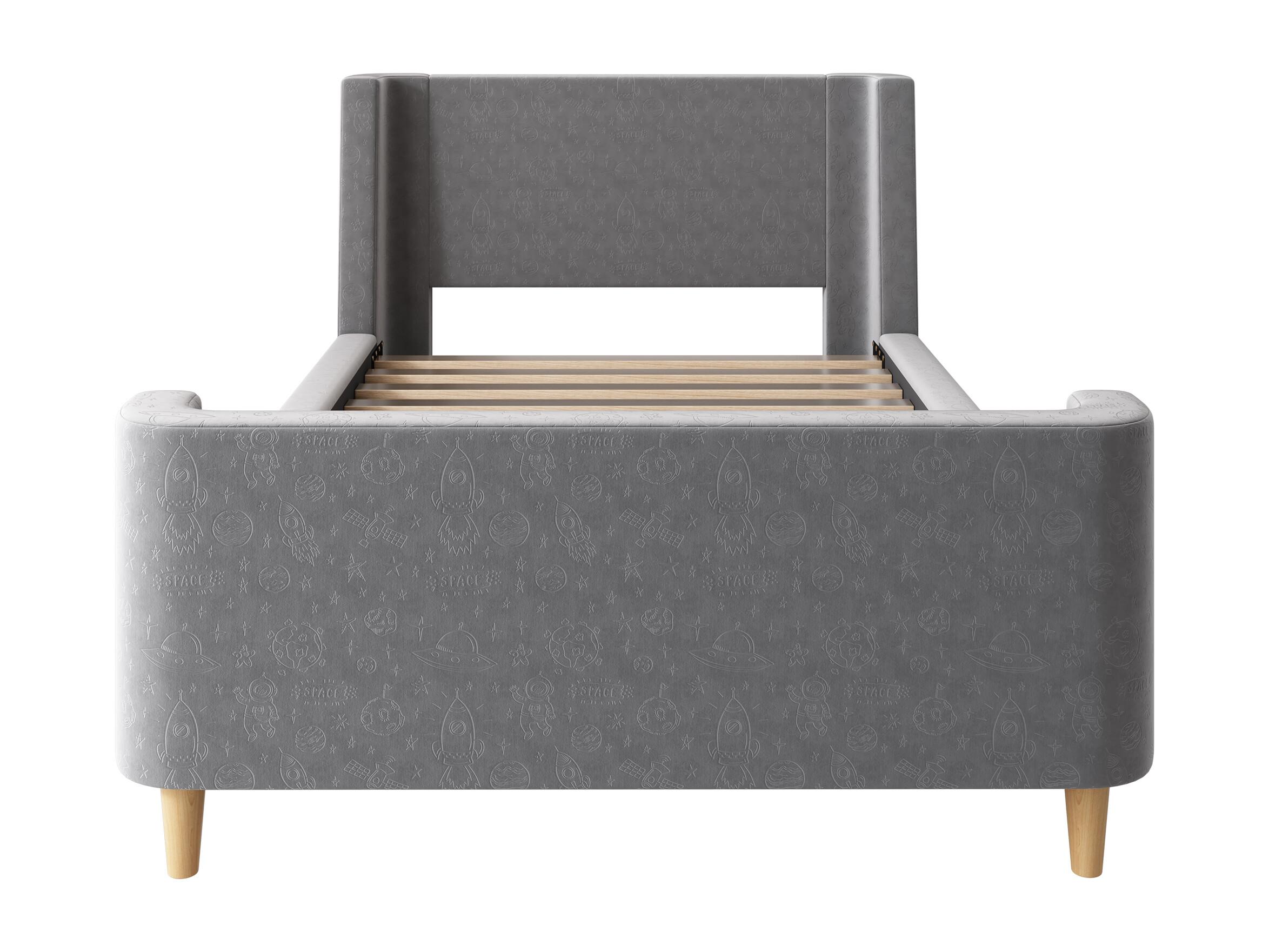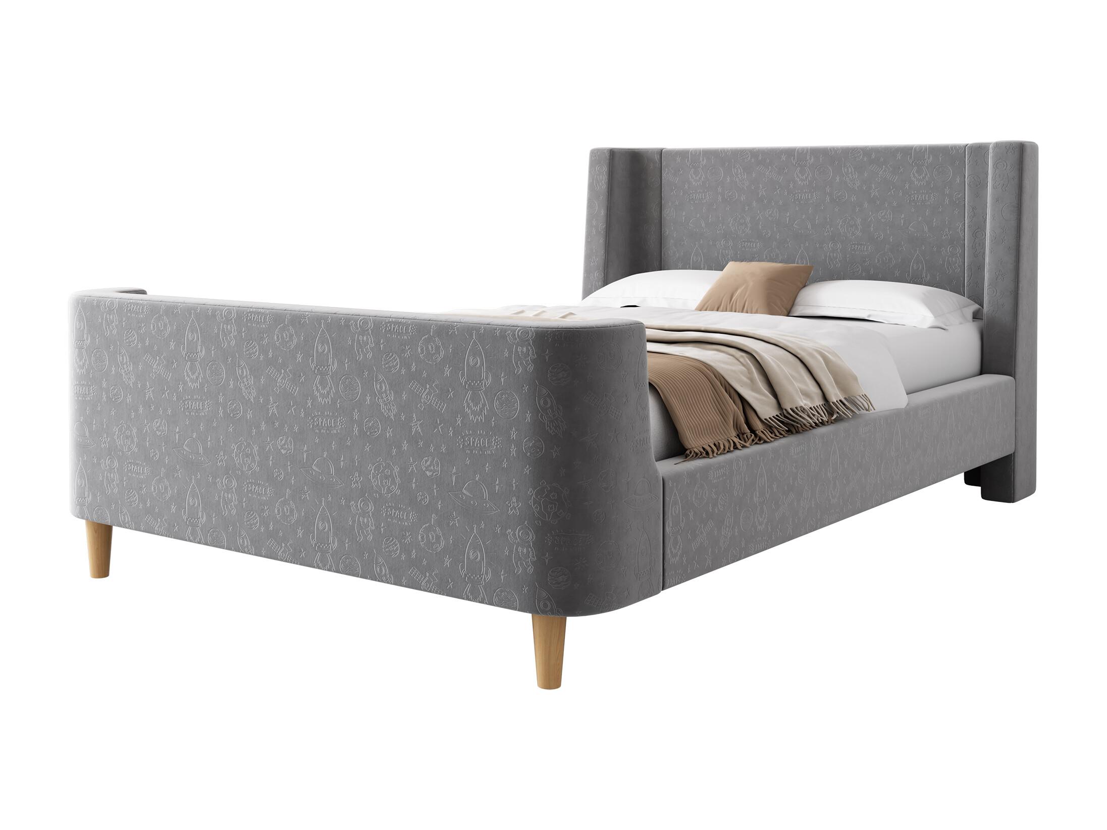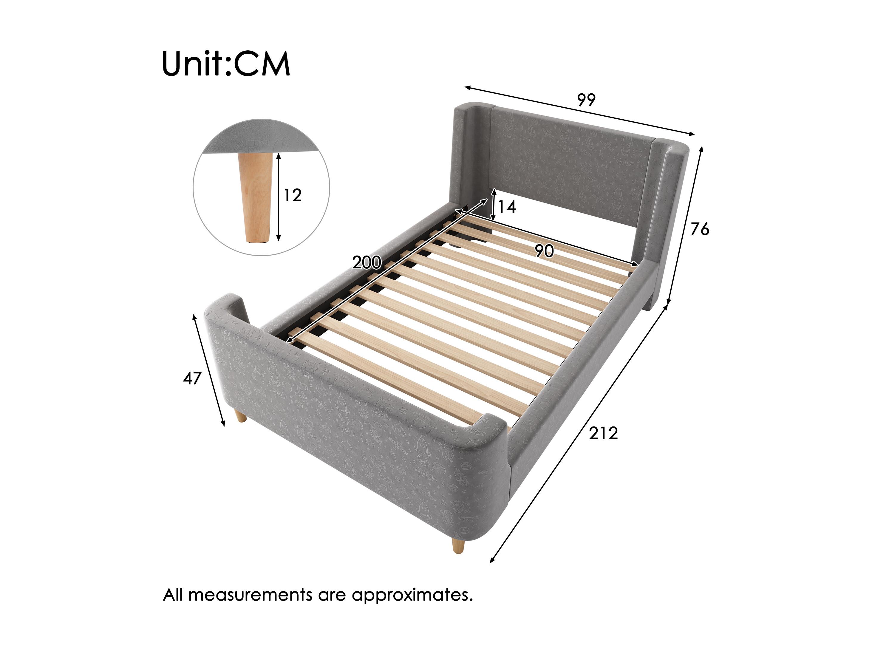 Lit enfant simple 90x200 cm avec sommier à Lattes- cadre de lit en bois - velours - gris (sans matelas)