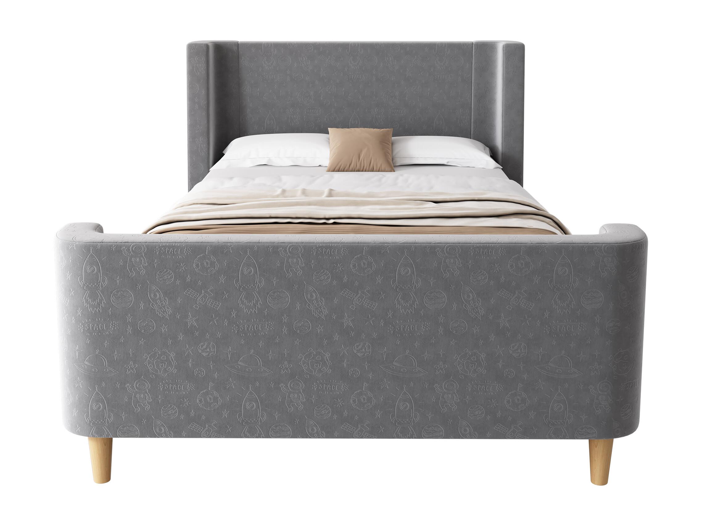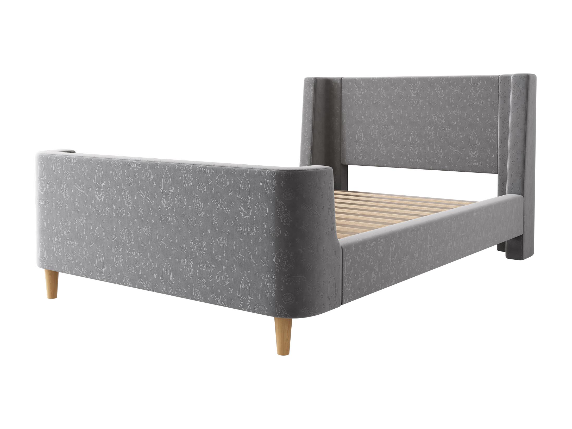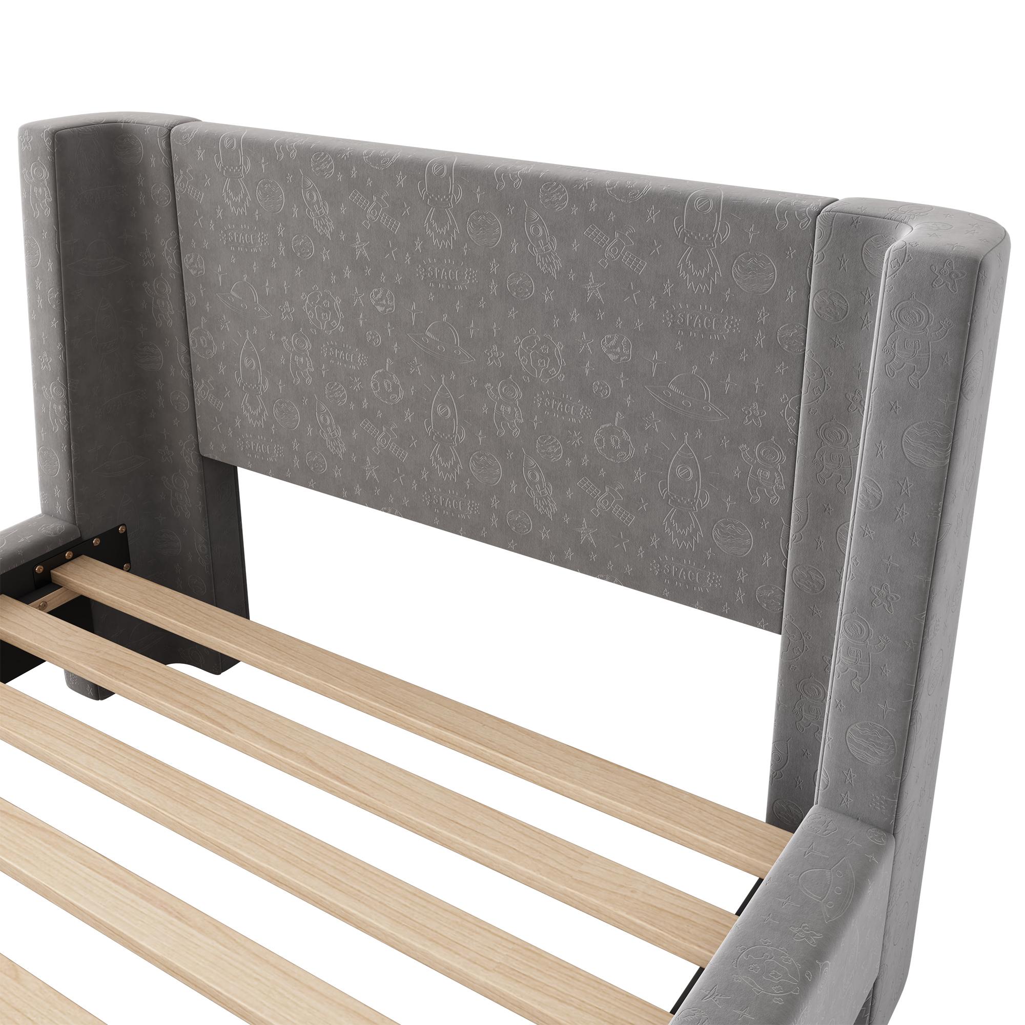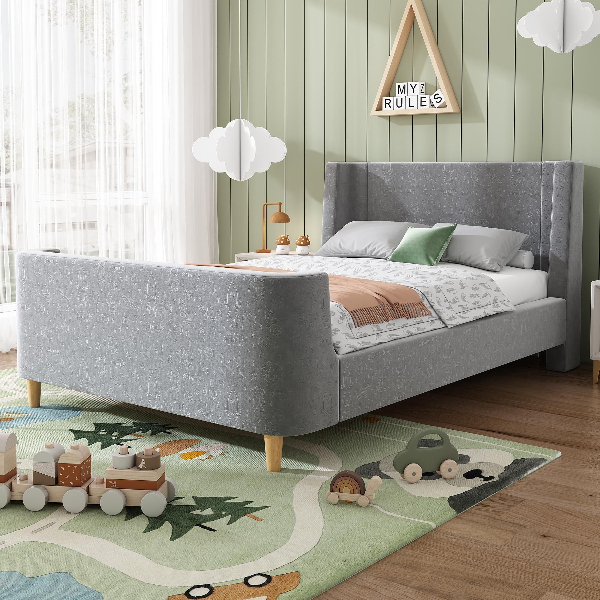 Lit enfant simple 90x200 cm avec sommier à Lattes- cadre de lit en bois - velours - gris (sans matelas)