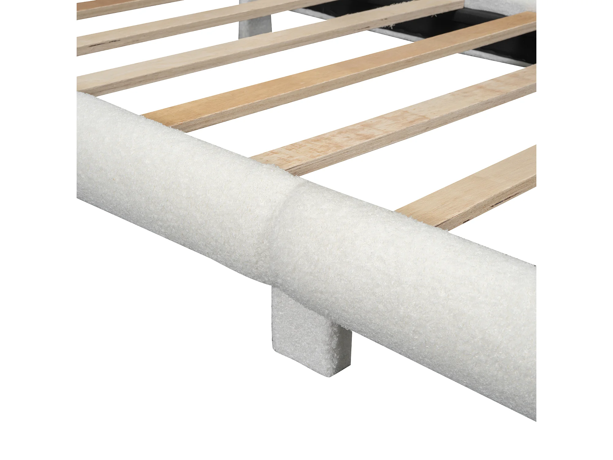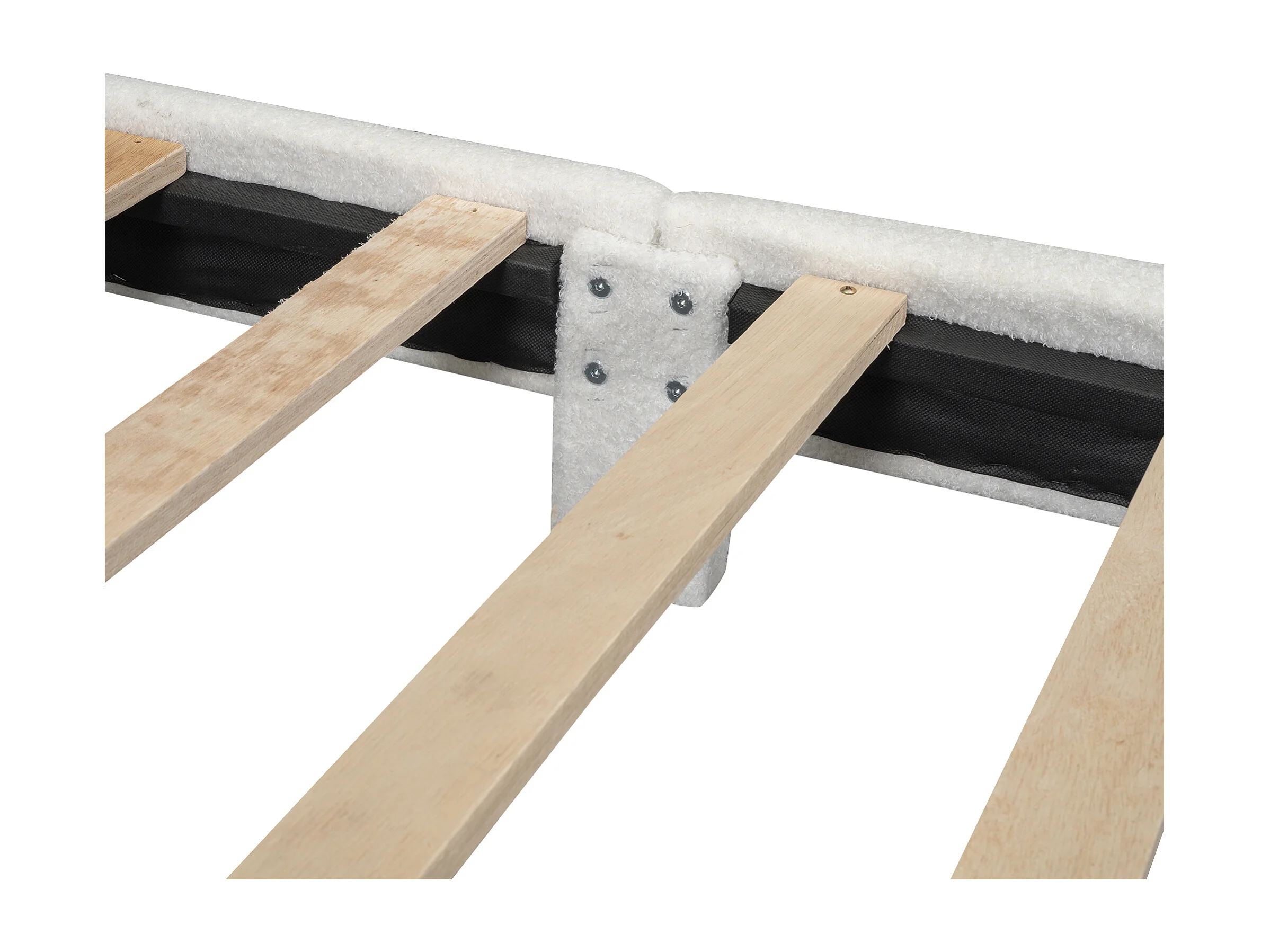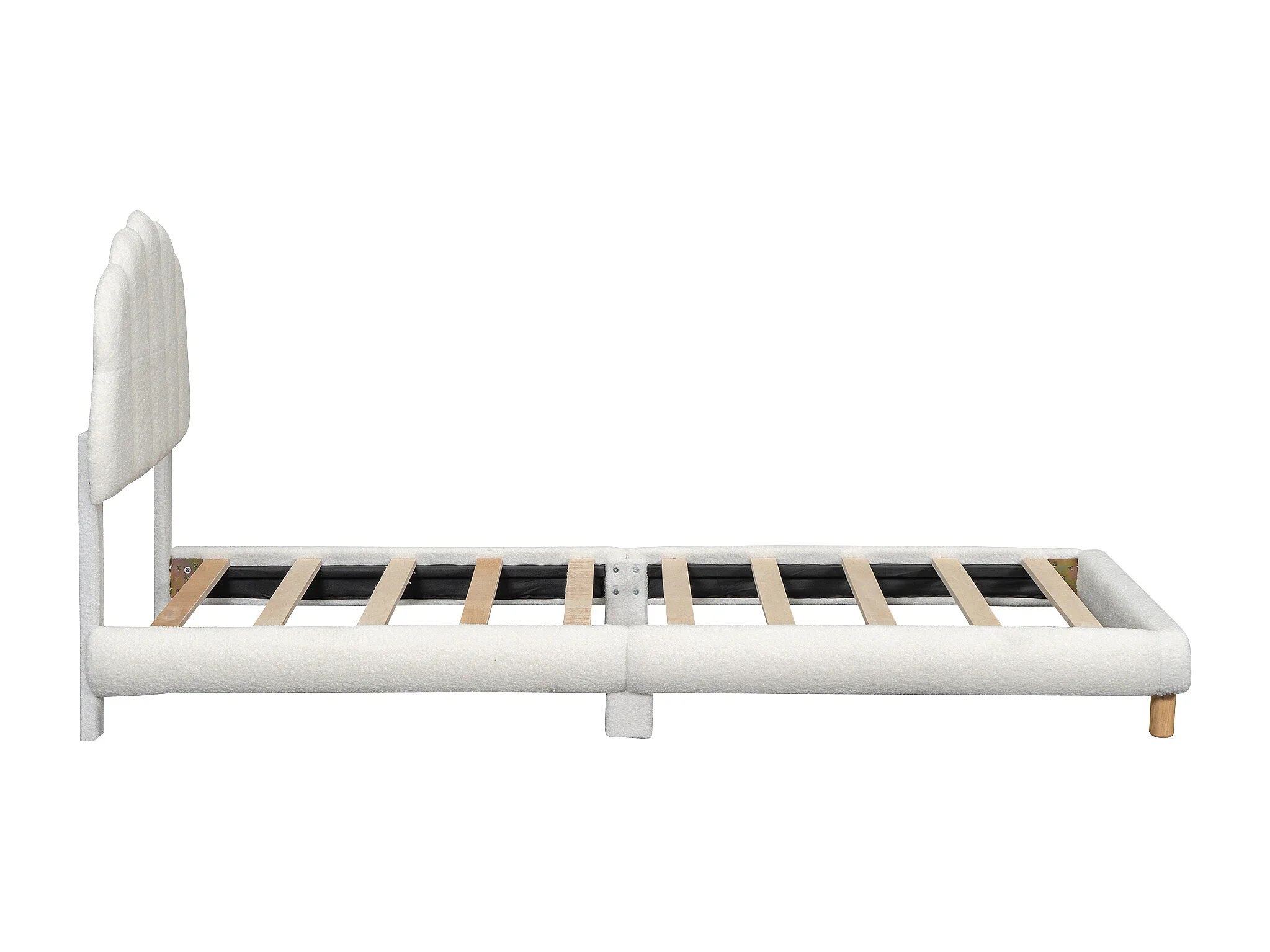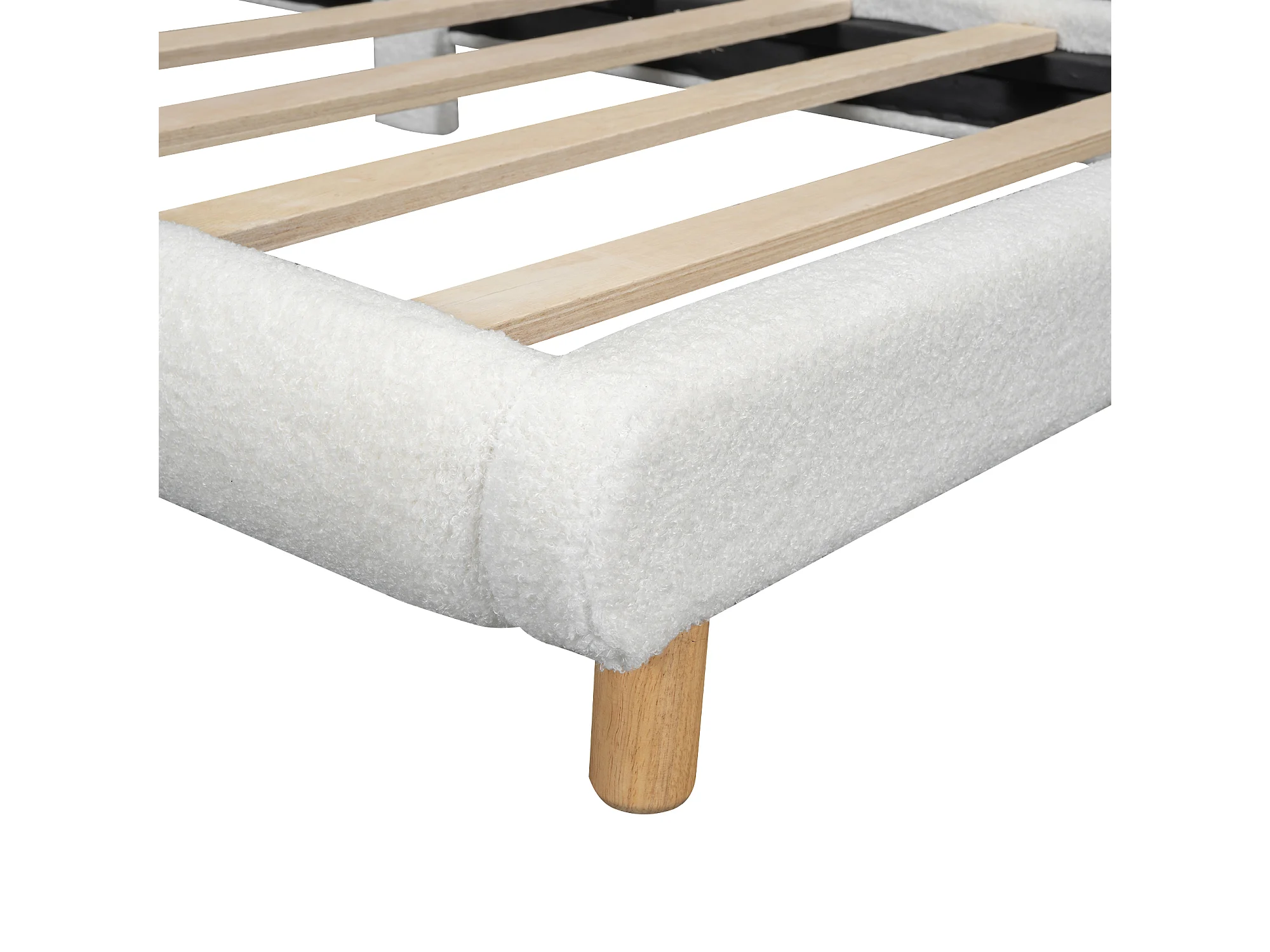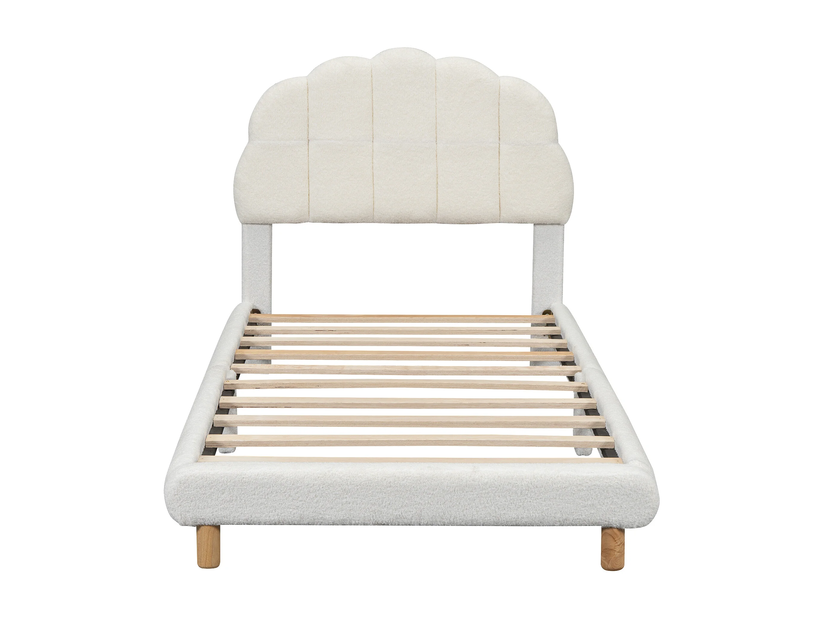 Lit simple 90x200 cm, peluche blanche, lit enfant avec tête de lit oreilles de lapin - sans matelas