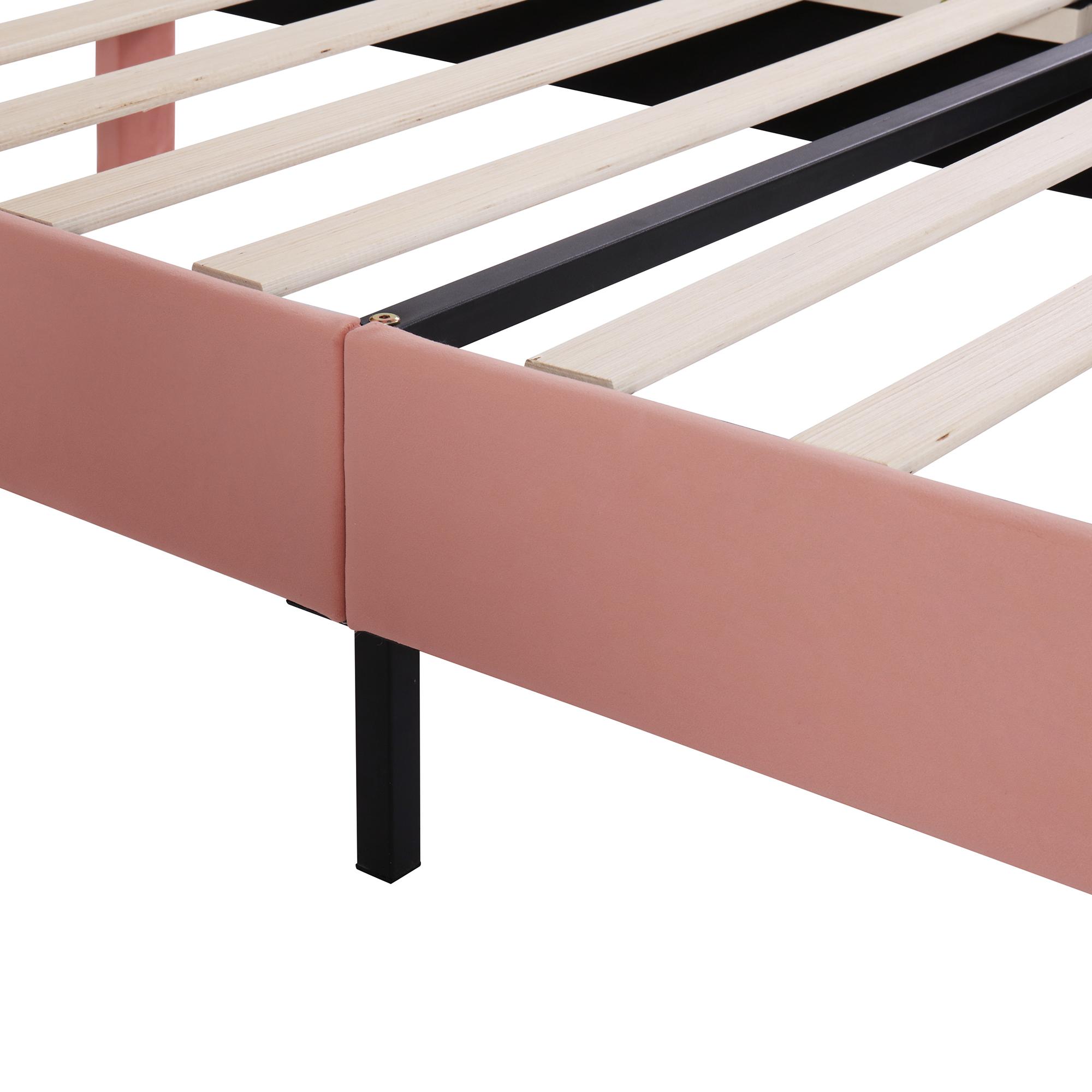 Lit enfant simple 90x200 cm avec sommier - tête de lit réglable en hauteur - bois - velours rose (sans matelas)