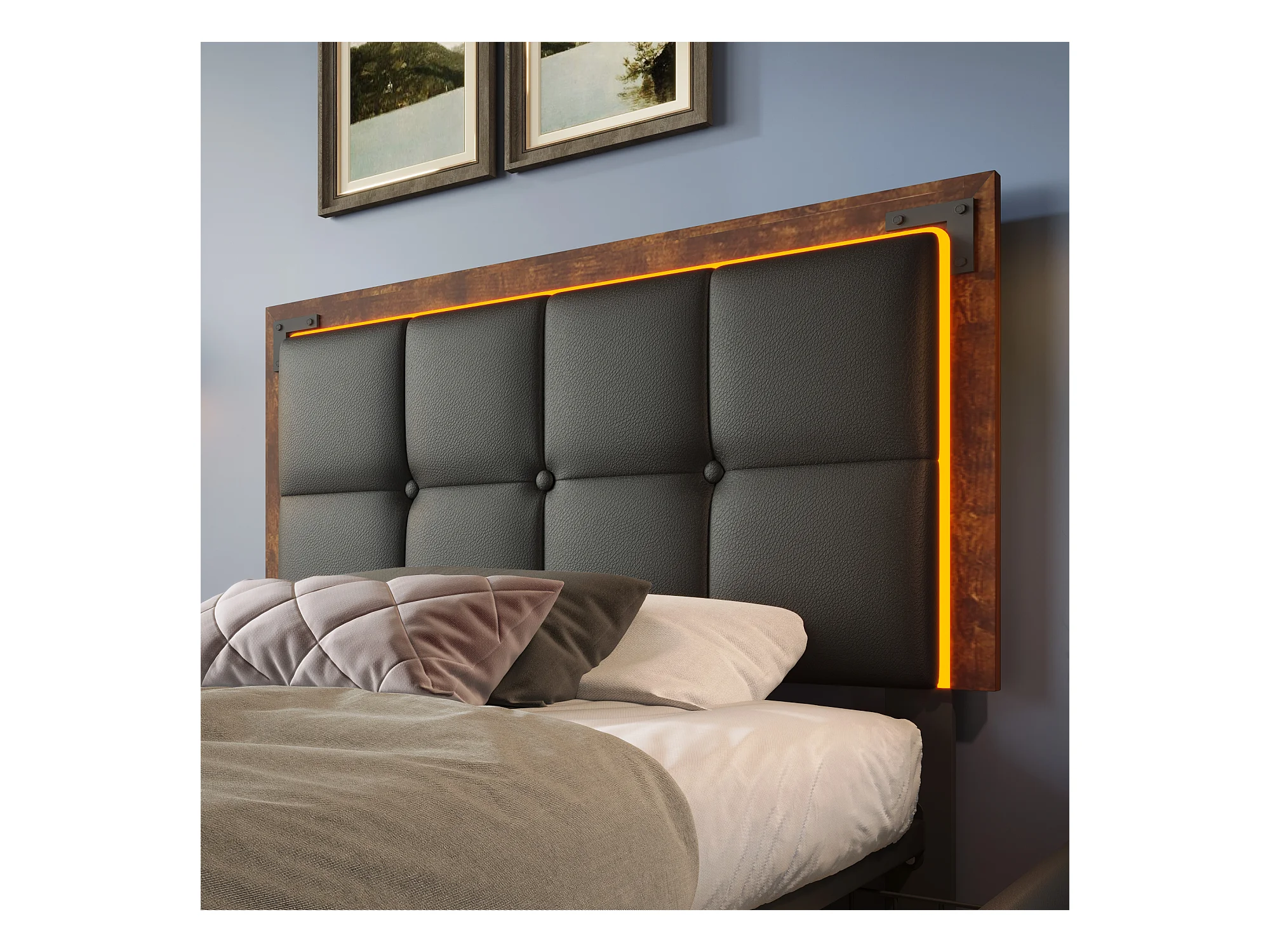 Lit enfant 90x200 cm - Lit ado avec 2 tiroirs et tête de lit réglable - éclairage LED - lin noir