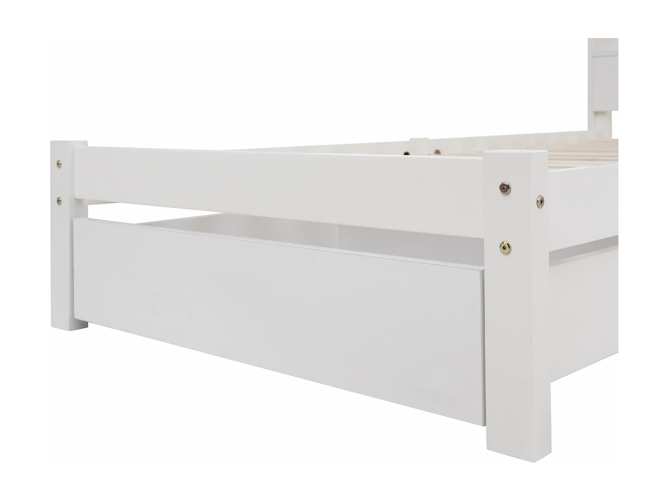 Lit simple 90x200cm avec 2 tiroirs, structure en bois massif, avec sommier à lattes, blanc