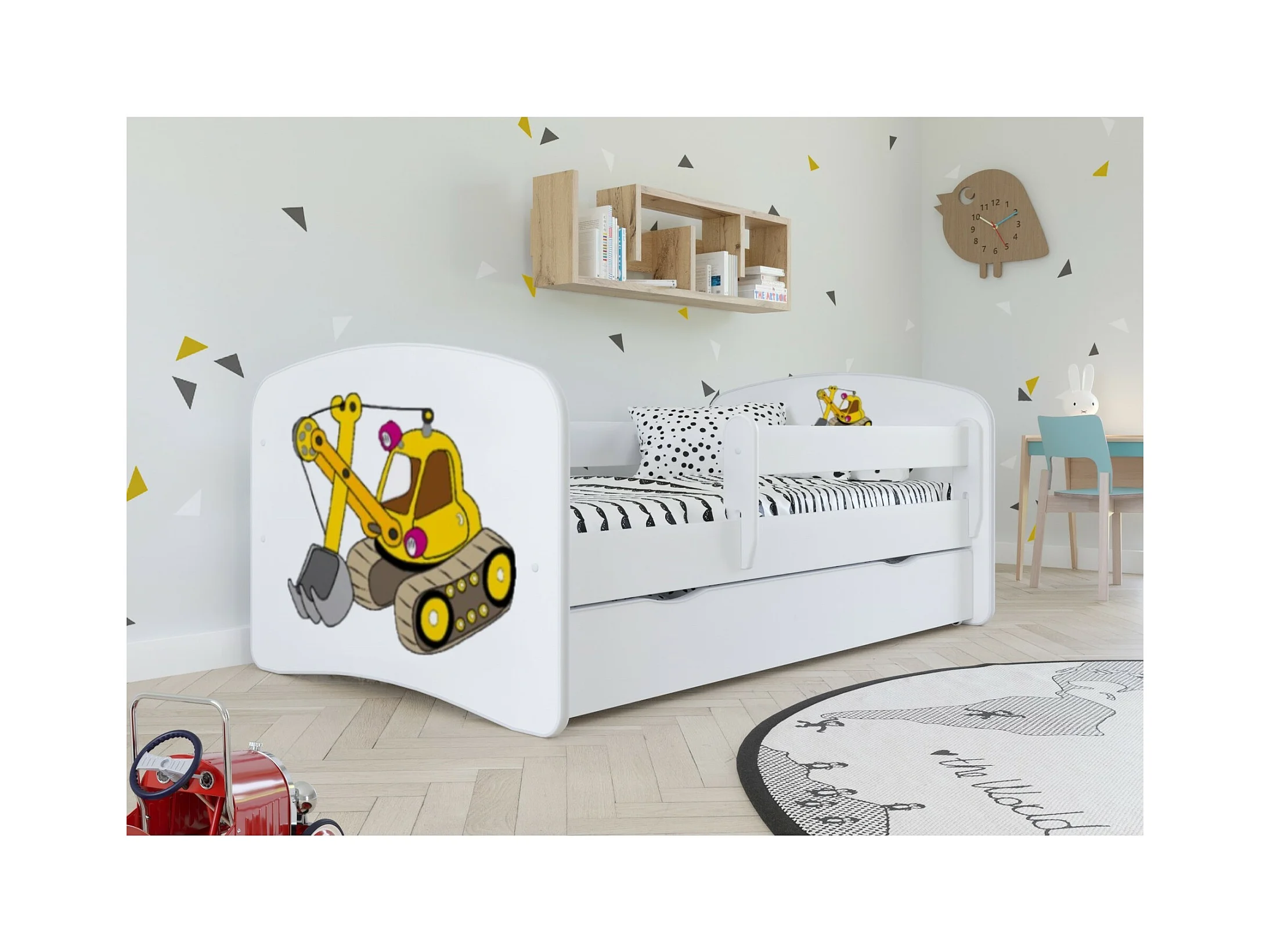 Lit enfant version grue avec sommiers et barrière de sécurité amovible Drimy-Matelas mousse-80x180-Tiroirs Avec tiroir