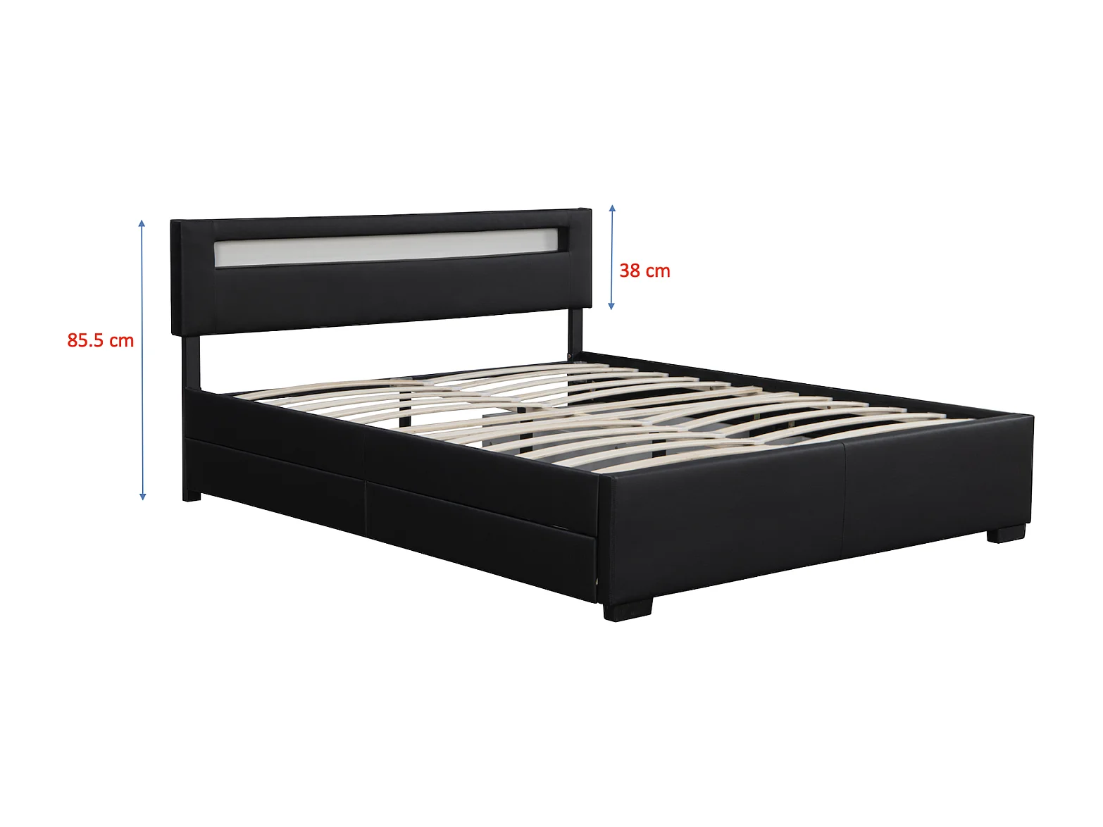 Lit coffre avec led 140 x 190 cm noir ENFIELD