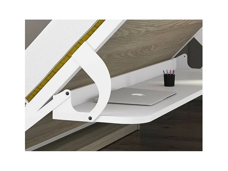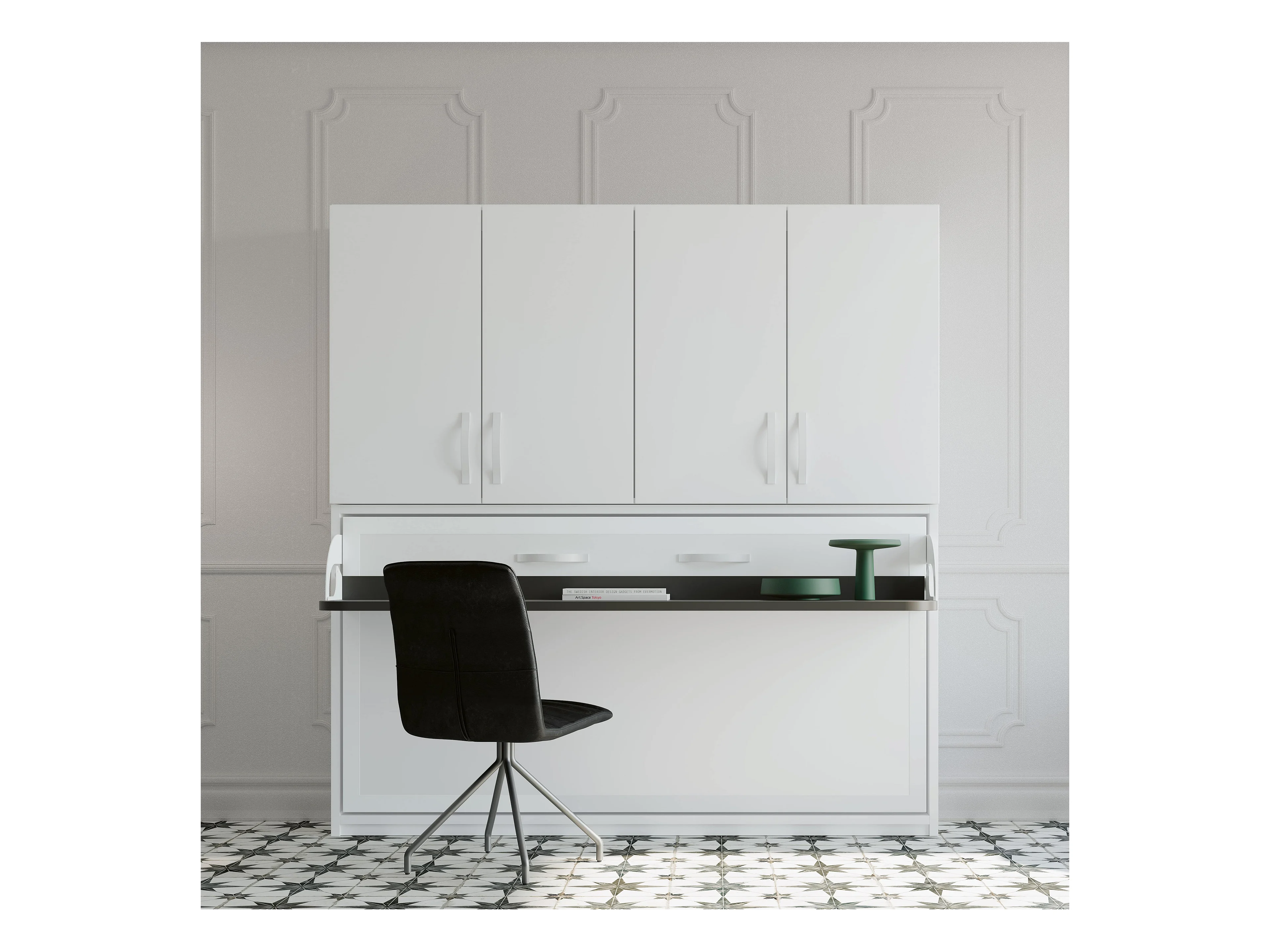 Lit escamotable avec bureau 90x190 blanc satiné P 35 Kinoa