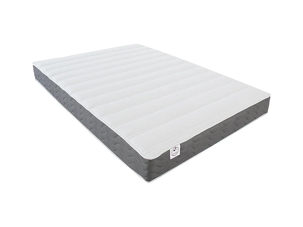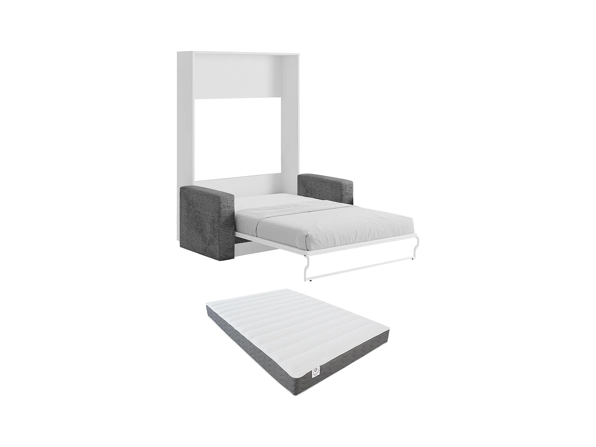 Lit escamotable canapé 140 x 200 cm - Ouverture verticale manuelle - Blanc et gris + Matelas - VACIALA II