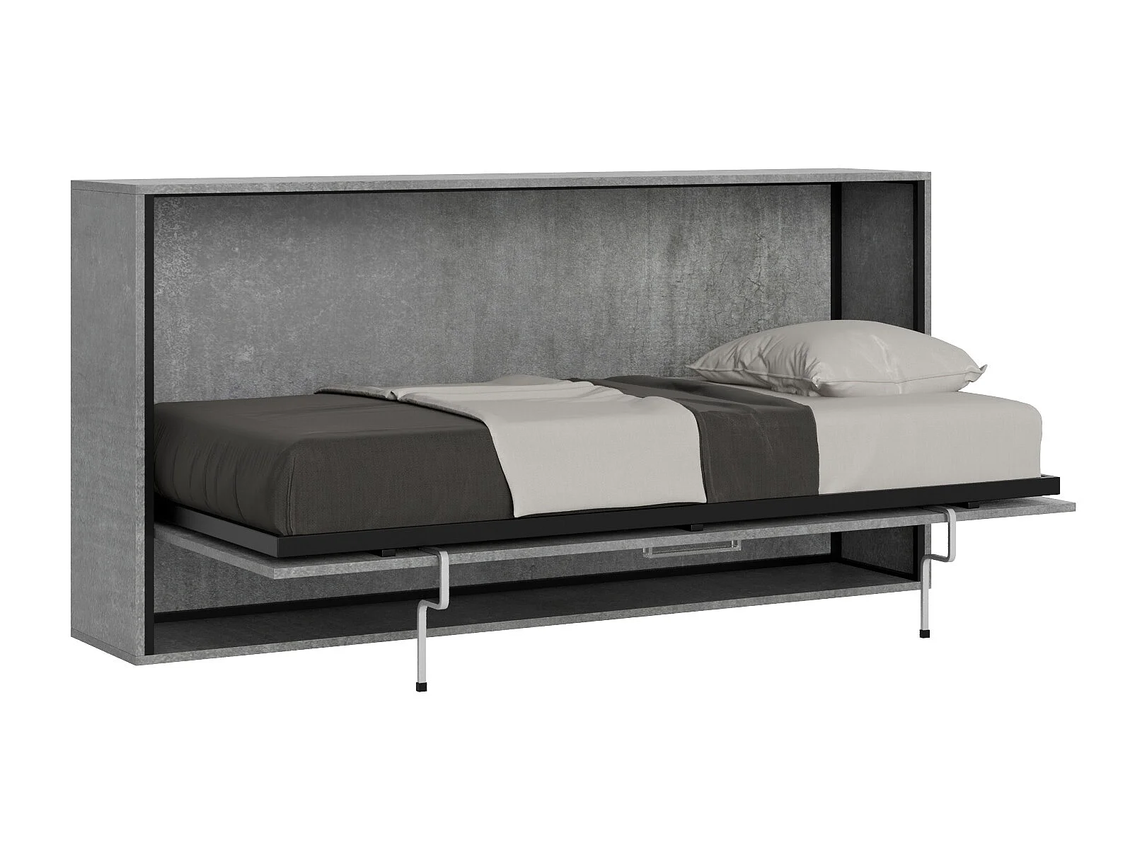 Lit escamotable horizontal 1 couchage 85 Kando avec matelas Gris Béton