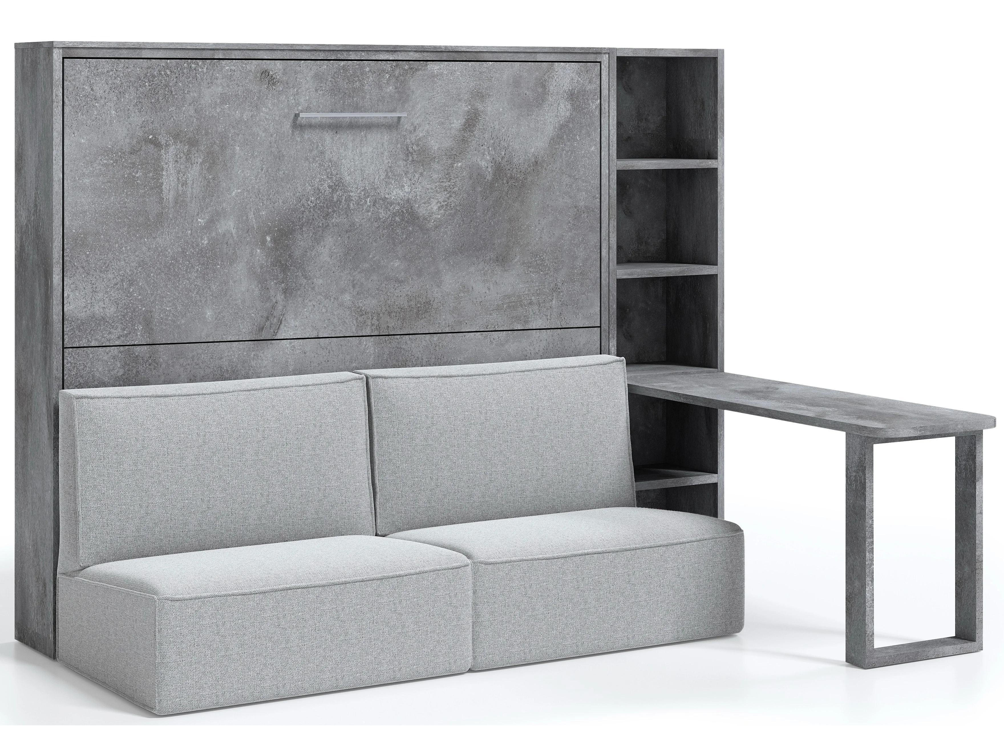 Lit escamotable horizontal 140x190 Prolok-Canapé Gris foncé-Structure Noyer