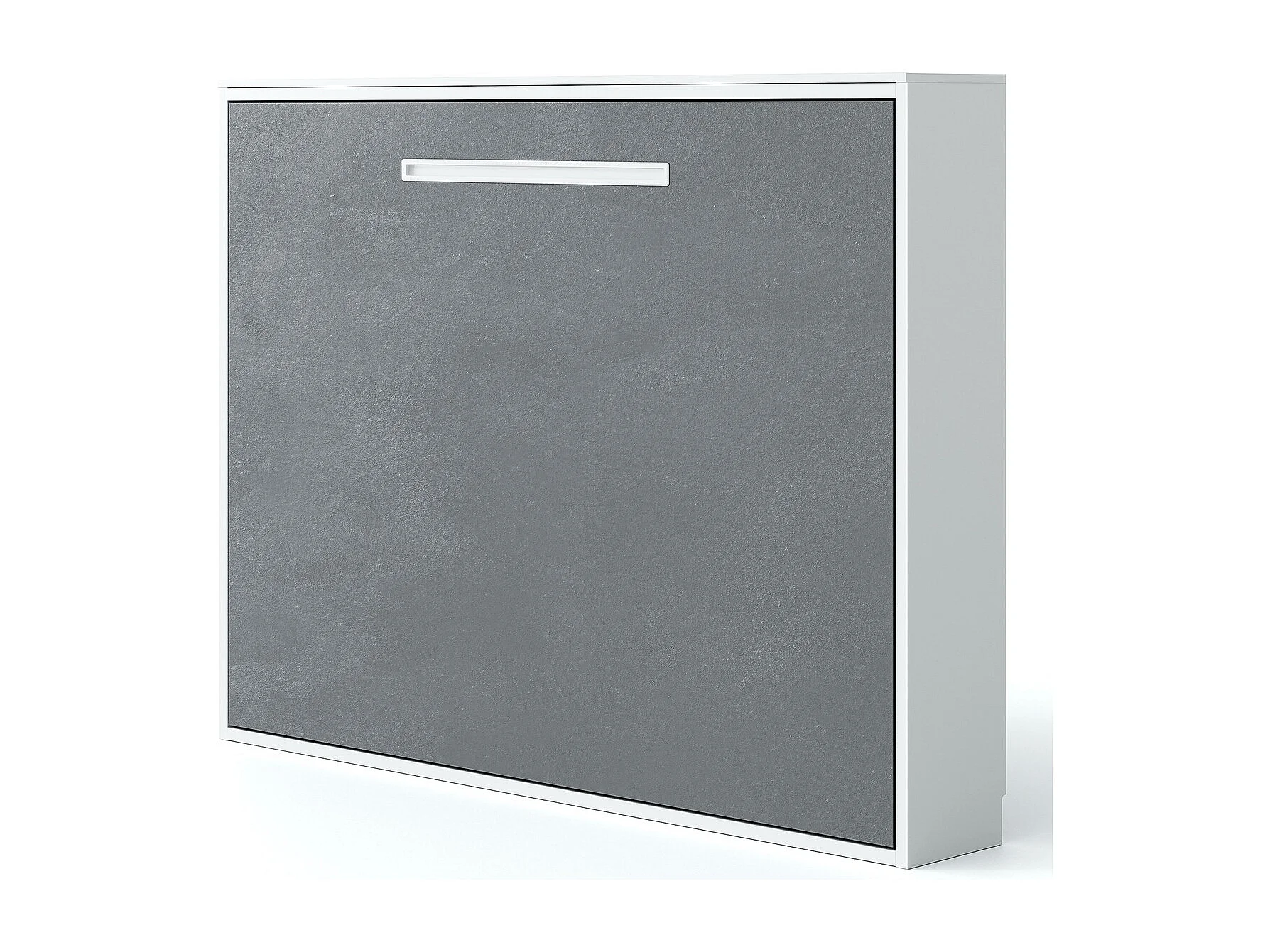 Lit escamotable horizontal 90x200 Molane-Avec matelas-Cadre Blanc-Façade Anthracite