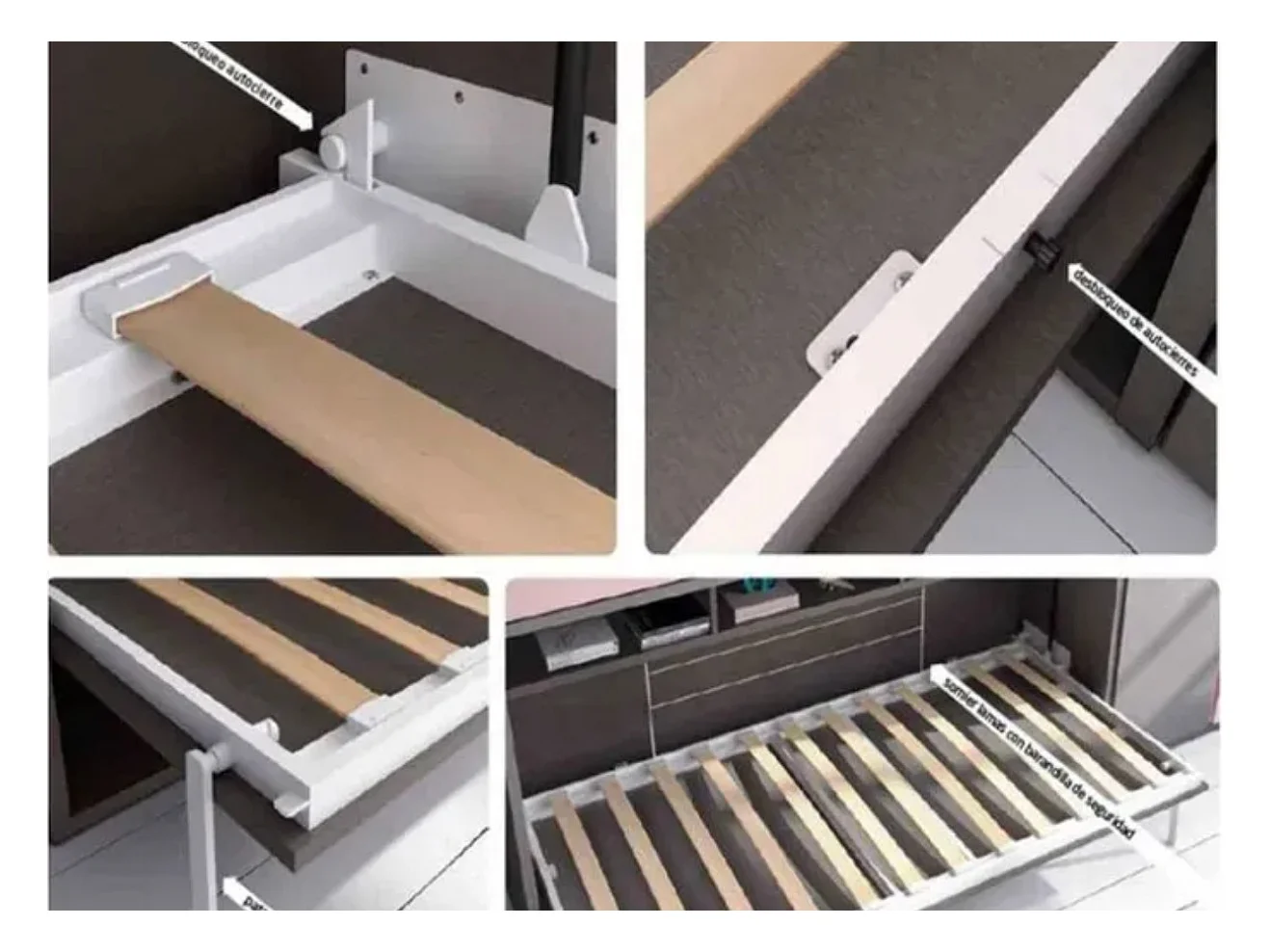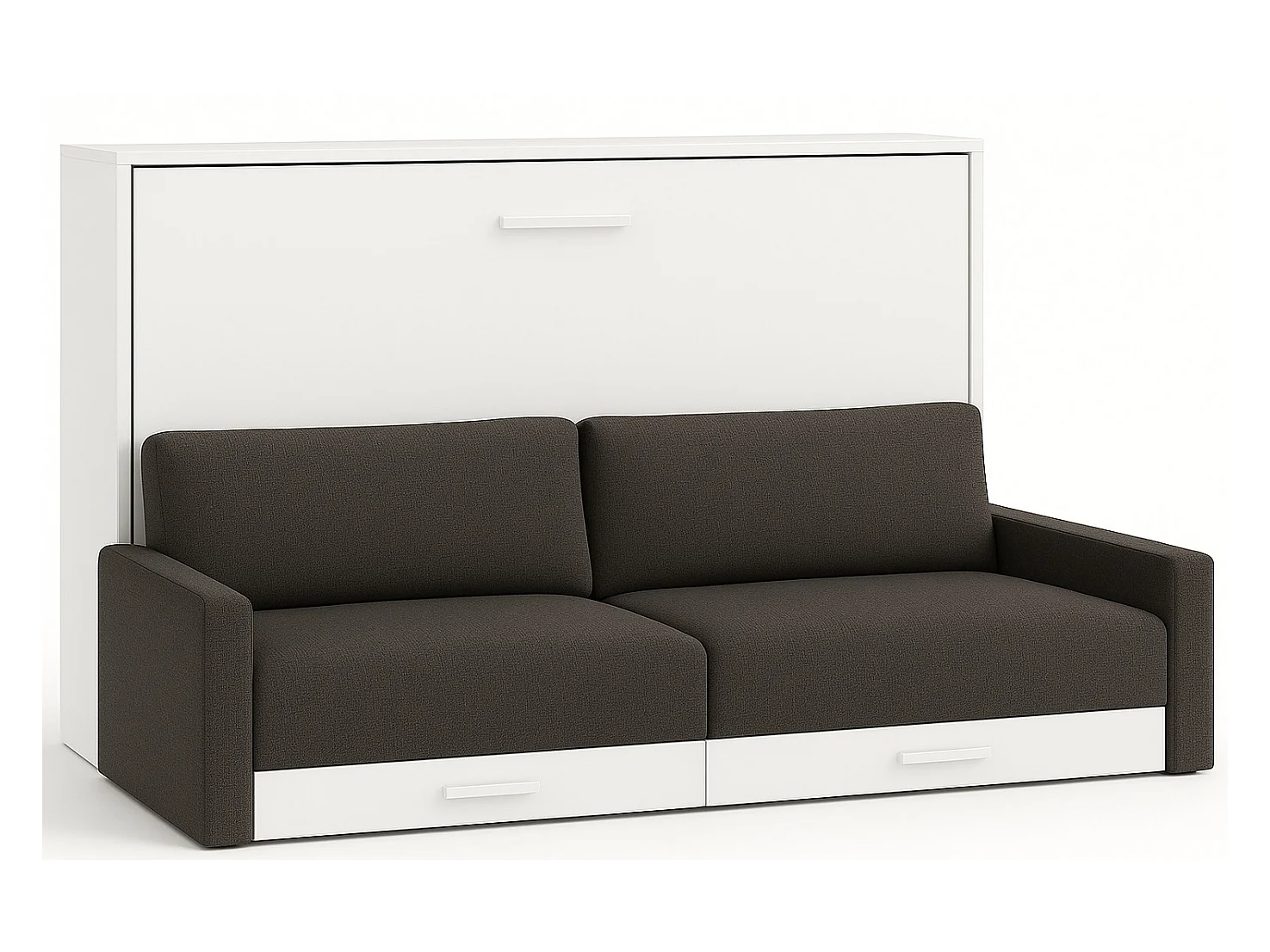 Lit escamotable horizontal avec canapé VETAL-120x190-Canapé Gris foncé-Structure Blanche
