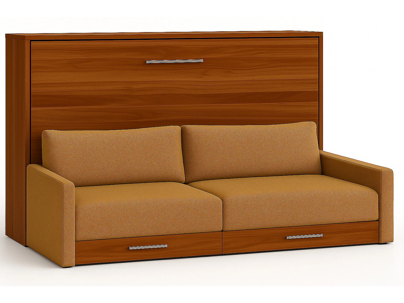 Lit escamotable horizontal avec canapé VETAL-140x190-Canapé Moutarde-Structure Noyer