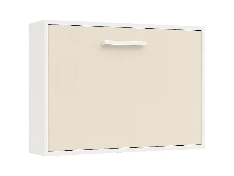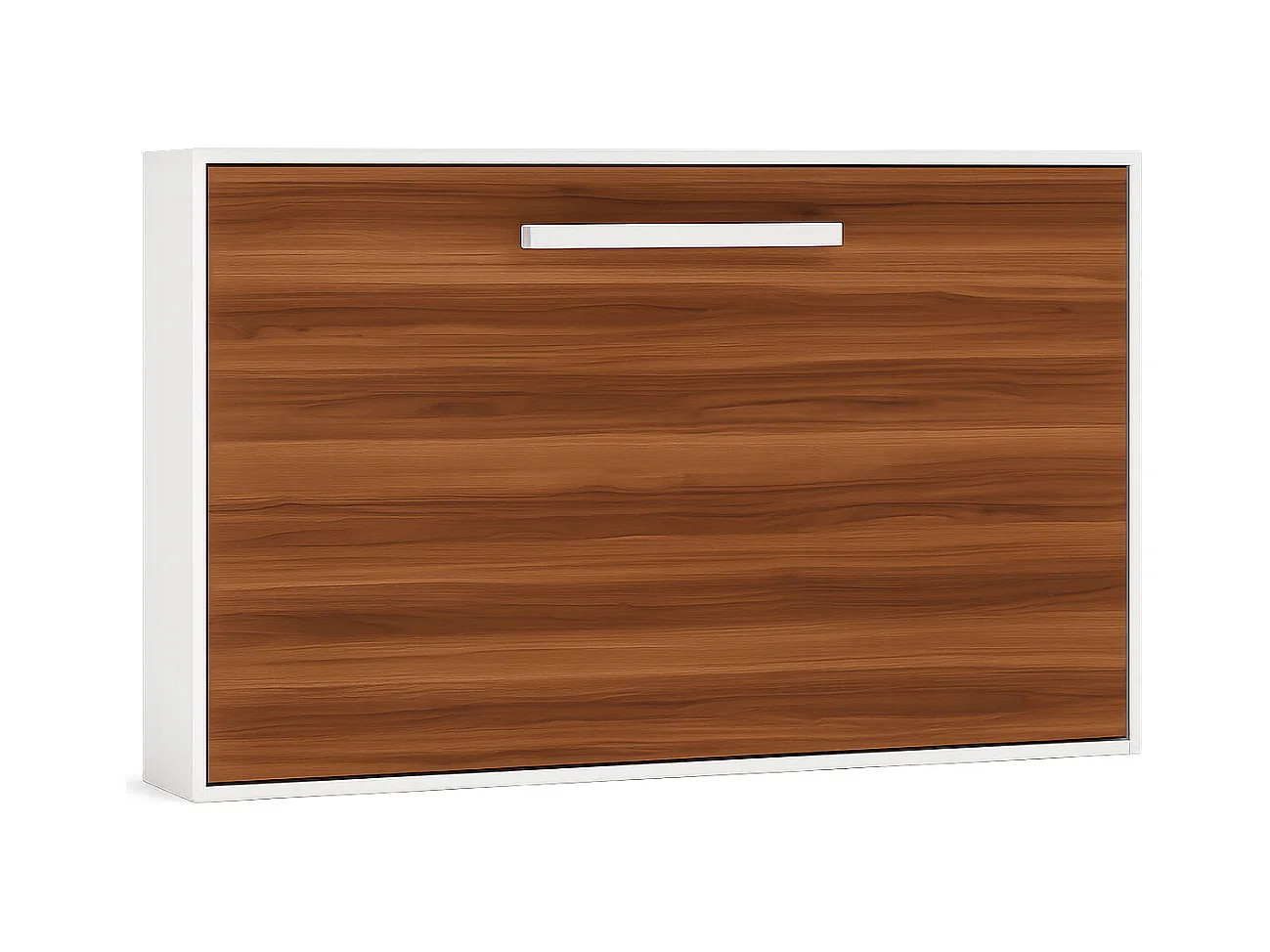 Lit escamotable horizontal OPTIMA-140x190-Cadre Blanc-Façade Noyer