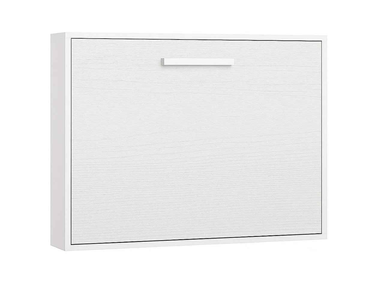 Lit escamotable horizontal superposé 90x200 STUDIO-Encadrement Blanc-Façade Chêne brun