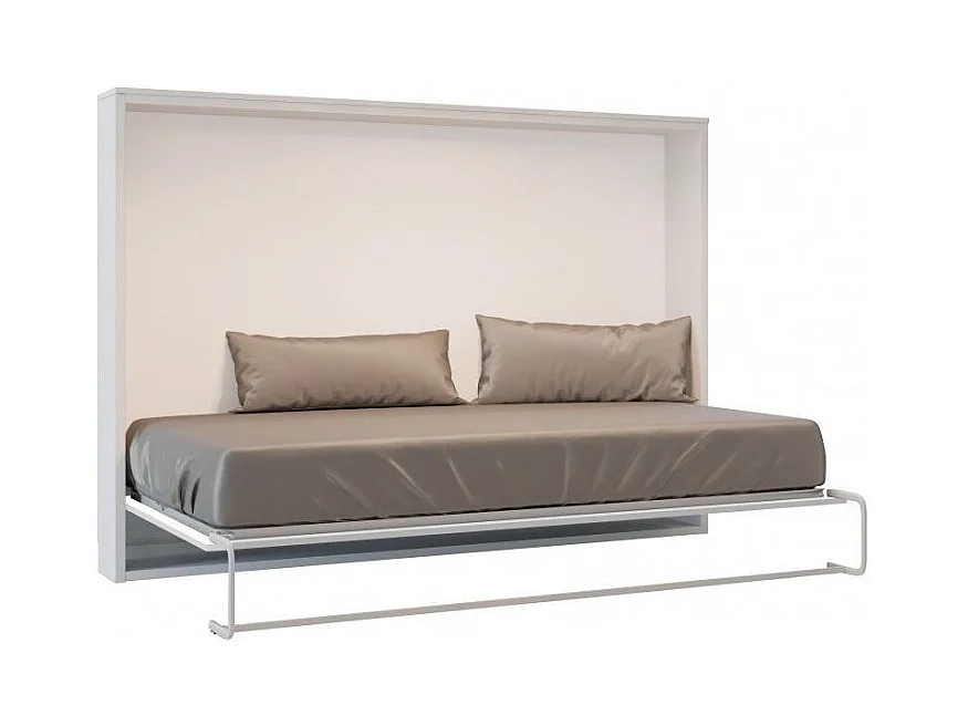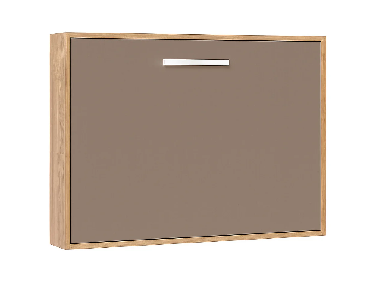 Lit escamotable horizontal OPTIMA-Avec matelas-140x190-Cadre Chêne clair-Façade Taupe