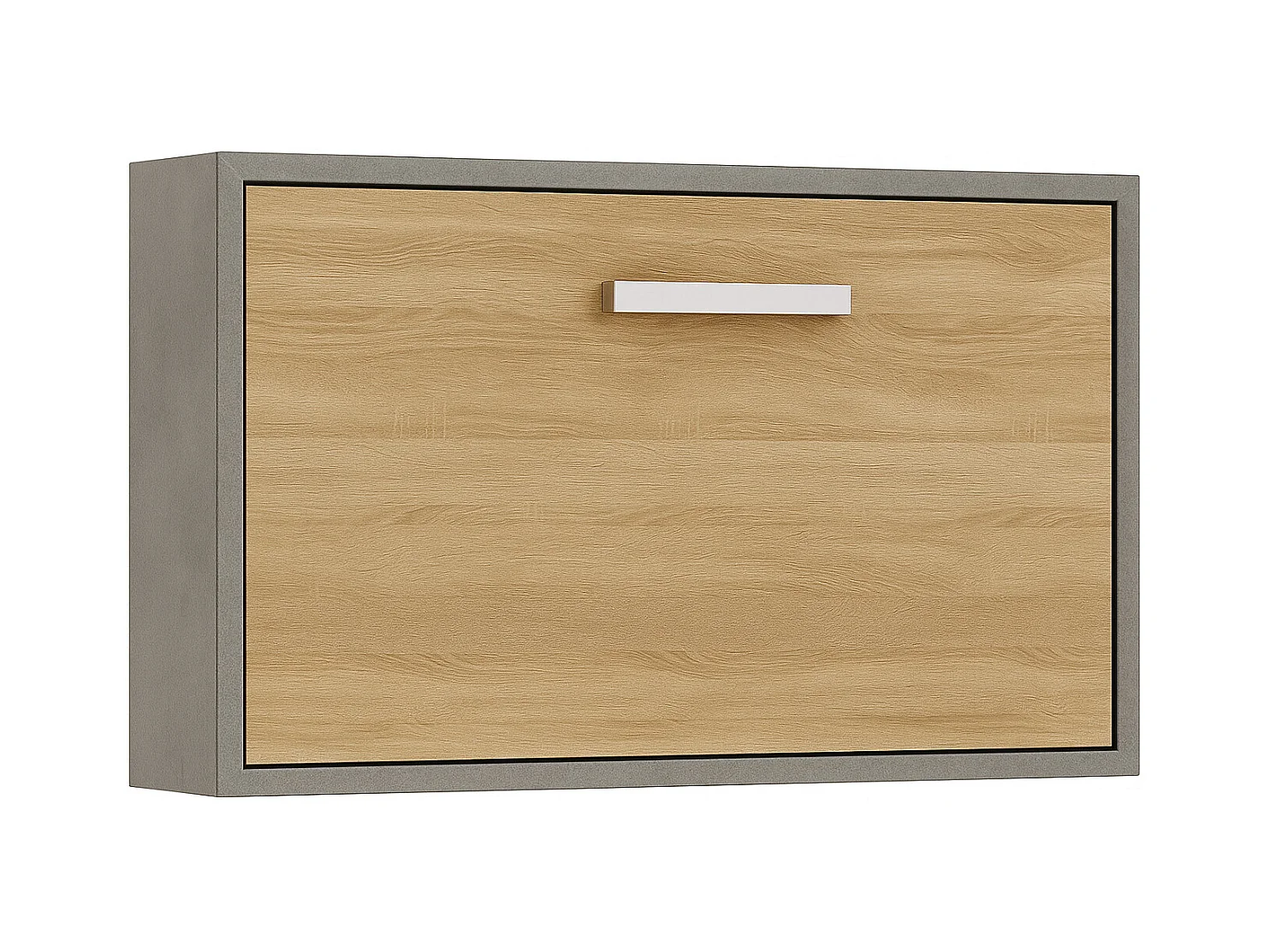 Lit escamotable horizontal OPTIMA-Avec matelas-160x200-Cadre Gris ciment-Façade Chêne clair
