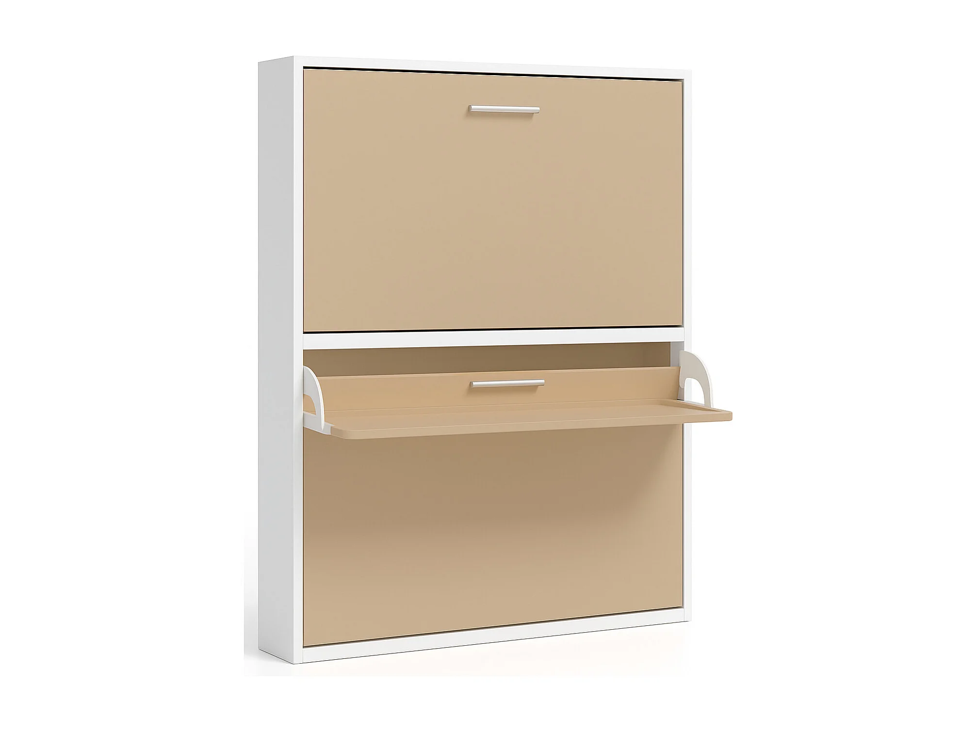 Lit escamotable horizontal superposé 90x180 STUDIO-Encadrement Blanc-Façade Vison