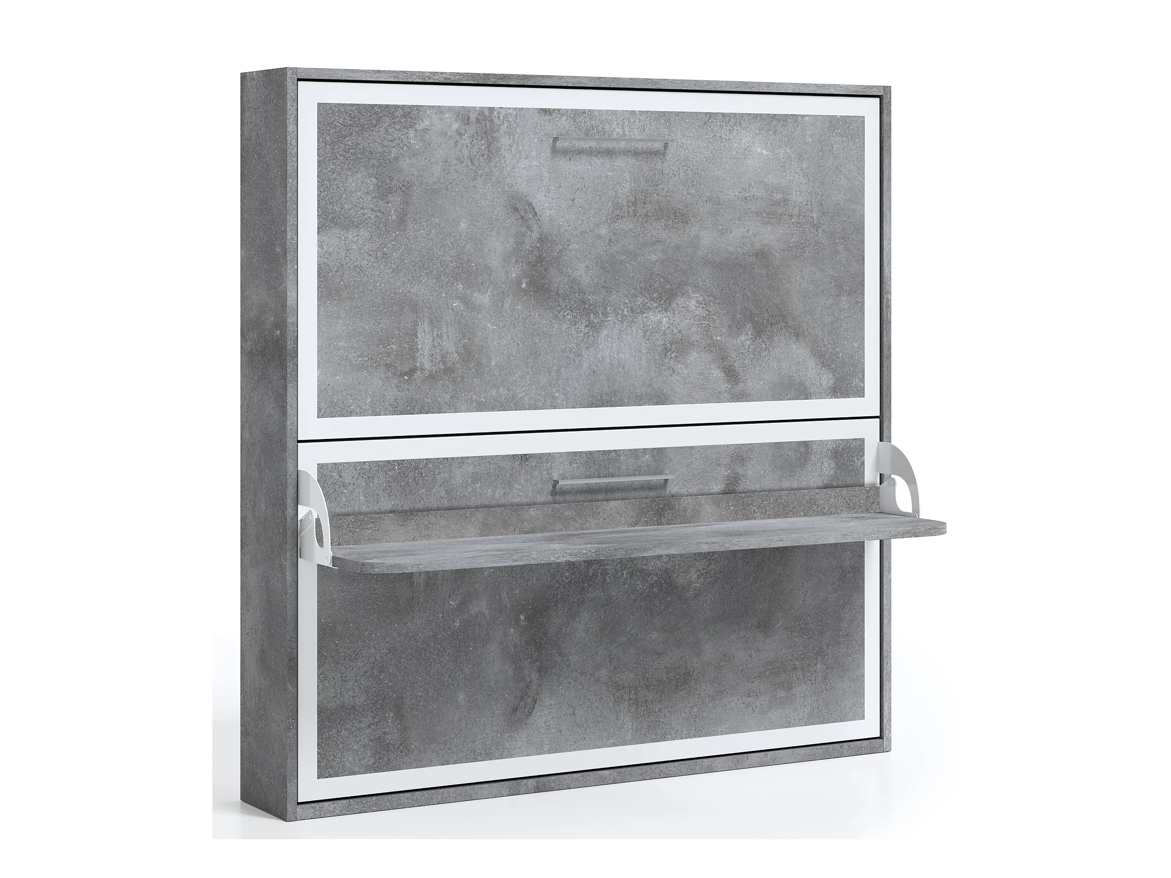 Lit escamotable horizontal superposé 90x190 STUDIO-Encadrement Blanc-Façade Ciment